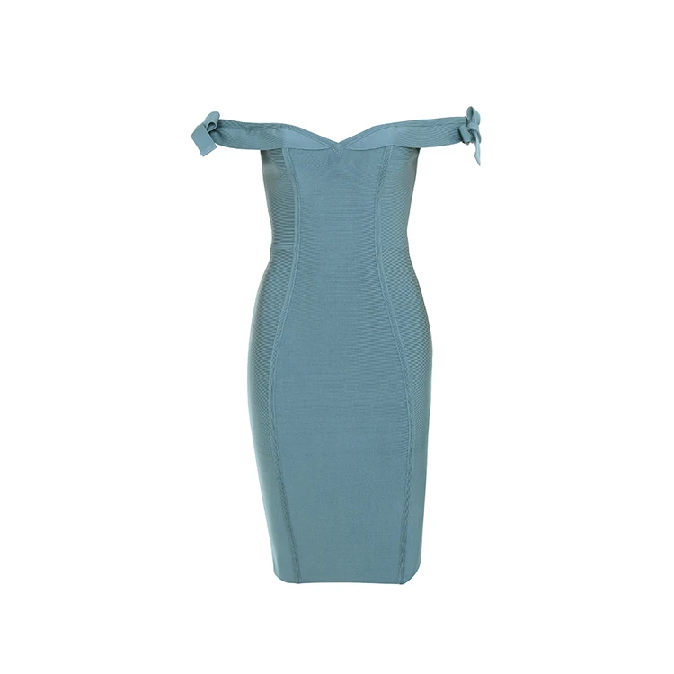 Sexy low cut women party dress word shoulder bow tight fitting backless ladies gray cyan tube top dress