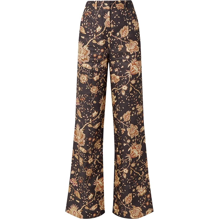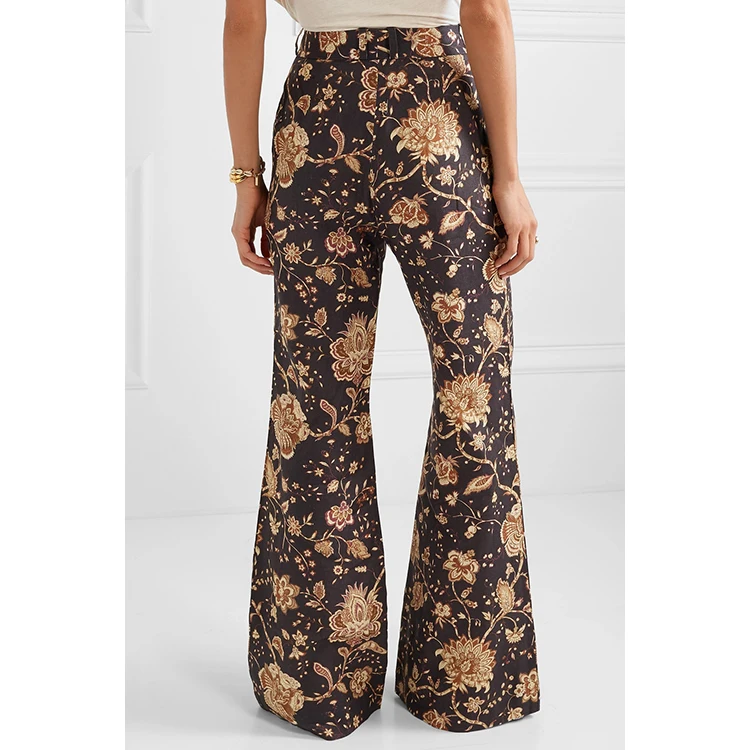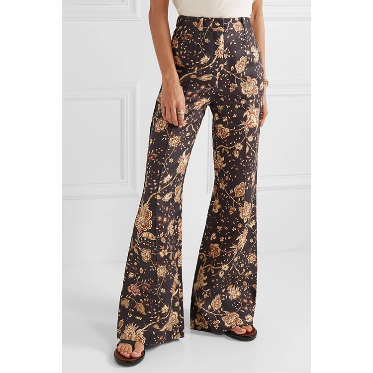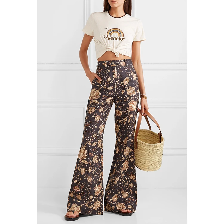 Fashion lady printed pants high waist loose trousers women flared pants
