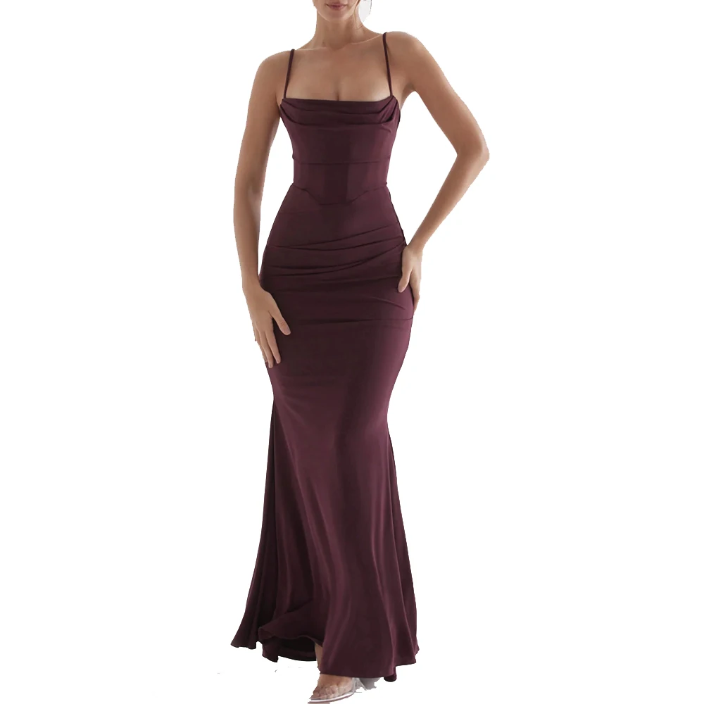 New Women Elegant Fashion Backless Slip Draped Club Party Outfit Corset Maxi Sundress