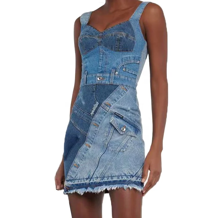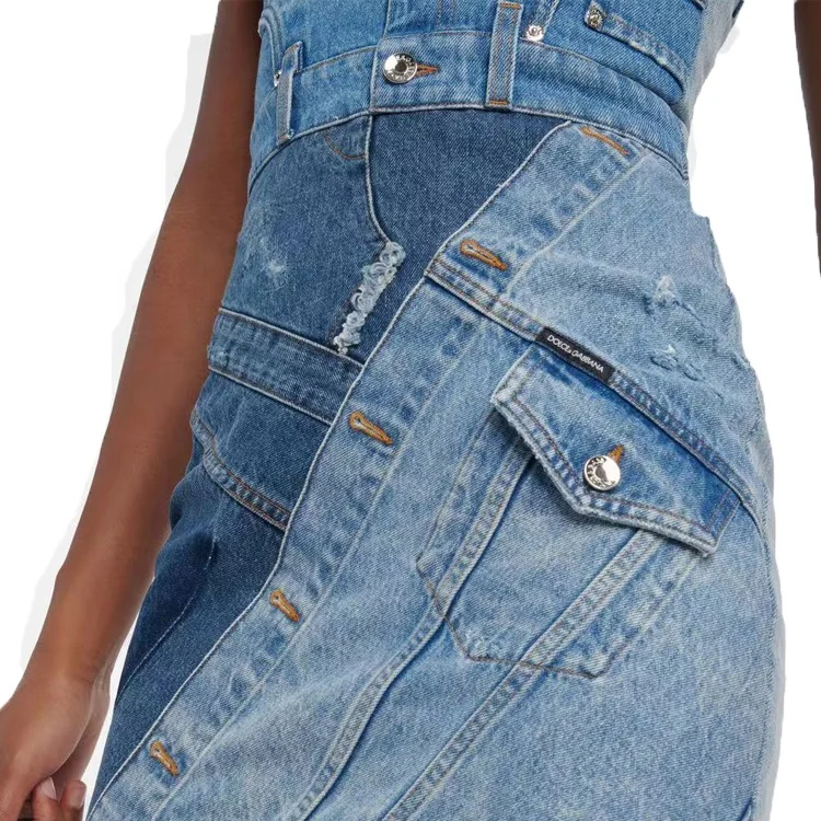 Address Wholesale Women's Dress Street Dress Denim Splicing Casual Dress Women's Miniskirt