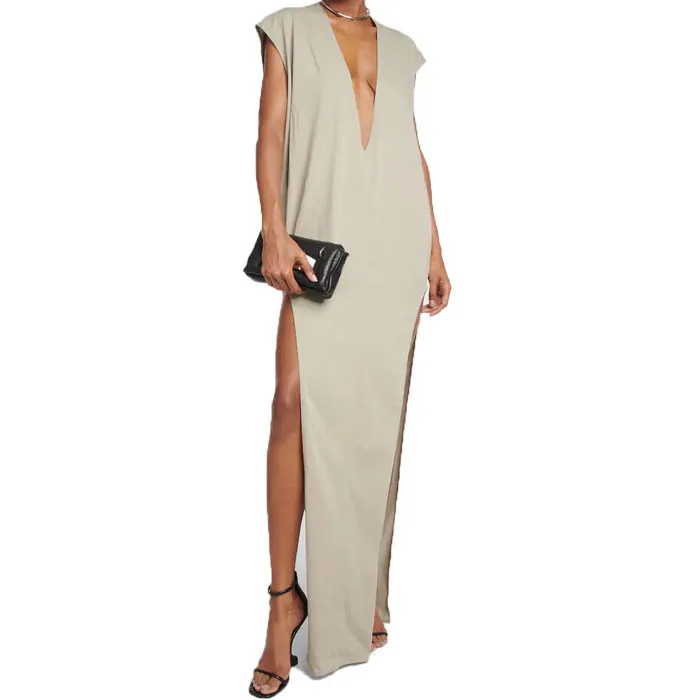 Factory Custom Wholesale Deep V Neck Cotton Maxi Dress Midi Dress Party Dress