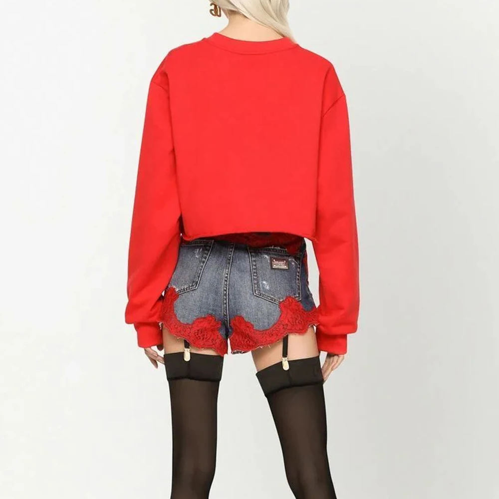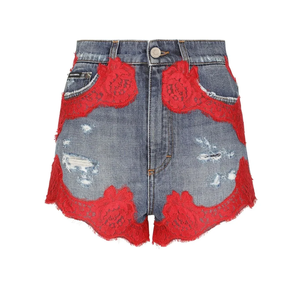 Wholesale Cotton blend women high quality denim short high waist distressed washed lace denim shorts summer