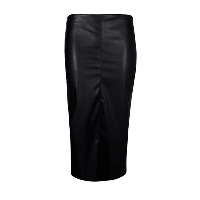 2020 New Fashion Black Faux leather High Waist Midi Pencil Skirt Office Women