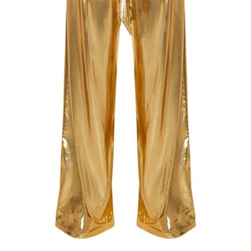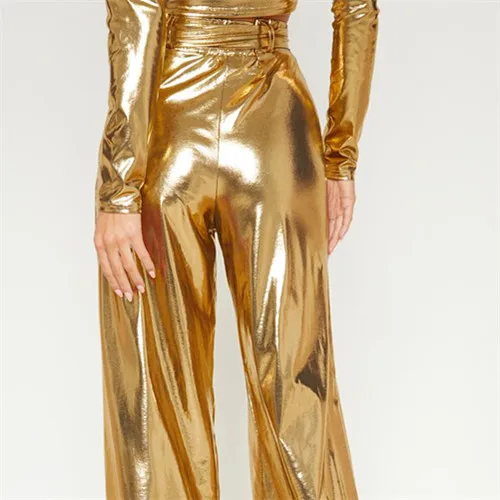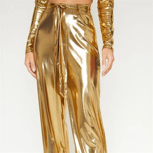 Women Party Golden Pants with Waist Bandwidth Loose Pants Lady Club Metallic Trousers