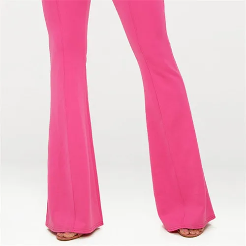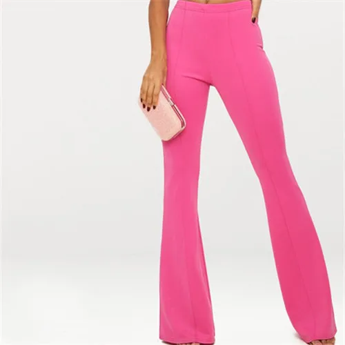 Lady pink Trousers Tight Bell-bottomed Pants Women Solid Color Wide Leg Trousers