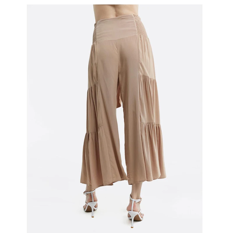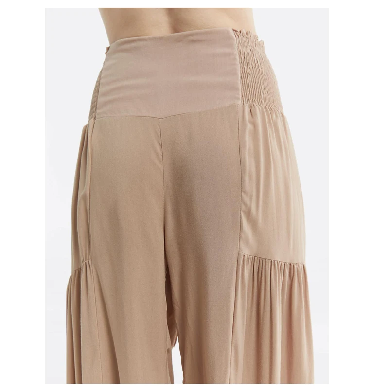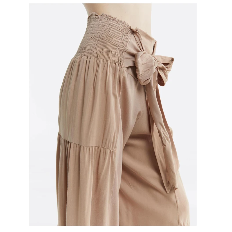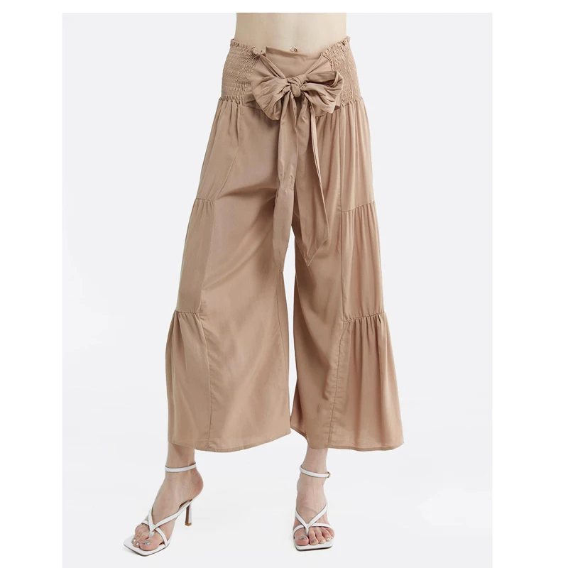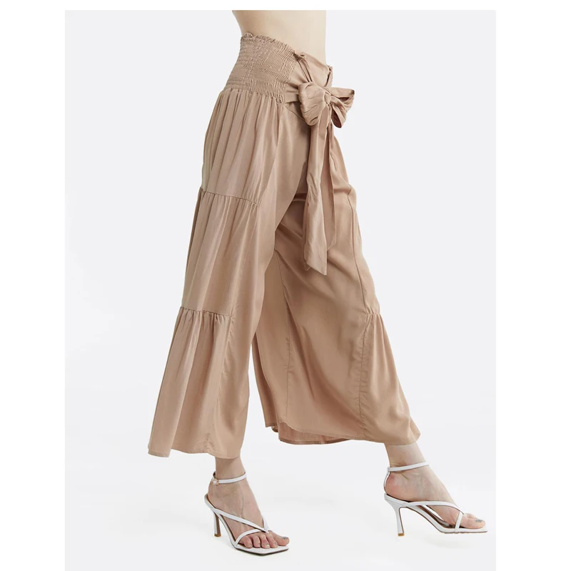 wholesale Rayon casual plus size high Rise long pants Tie Waist Ruched Flare loose Pants