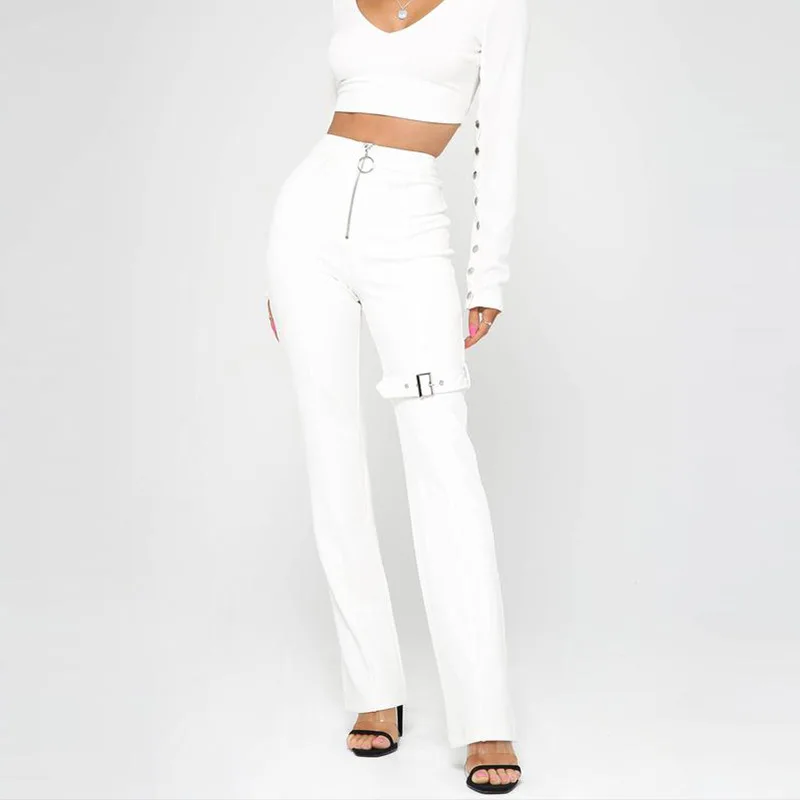 2020 New Fashion Women Trousers White Black Lace-up Sexy Leggings Stretch Pencil Pants