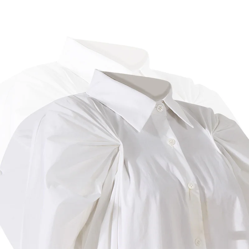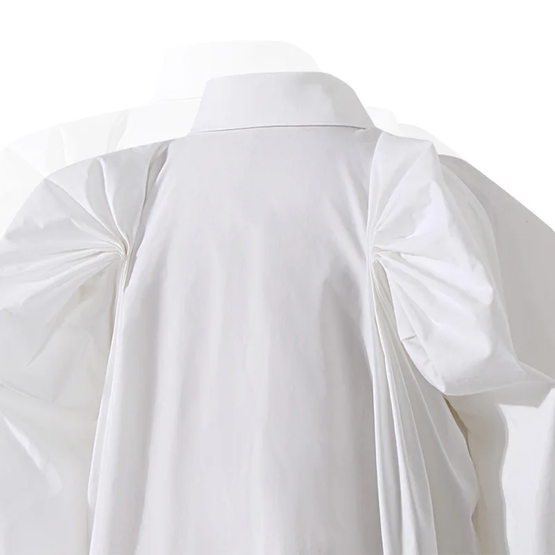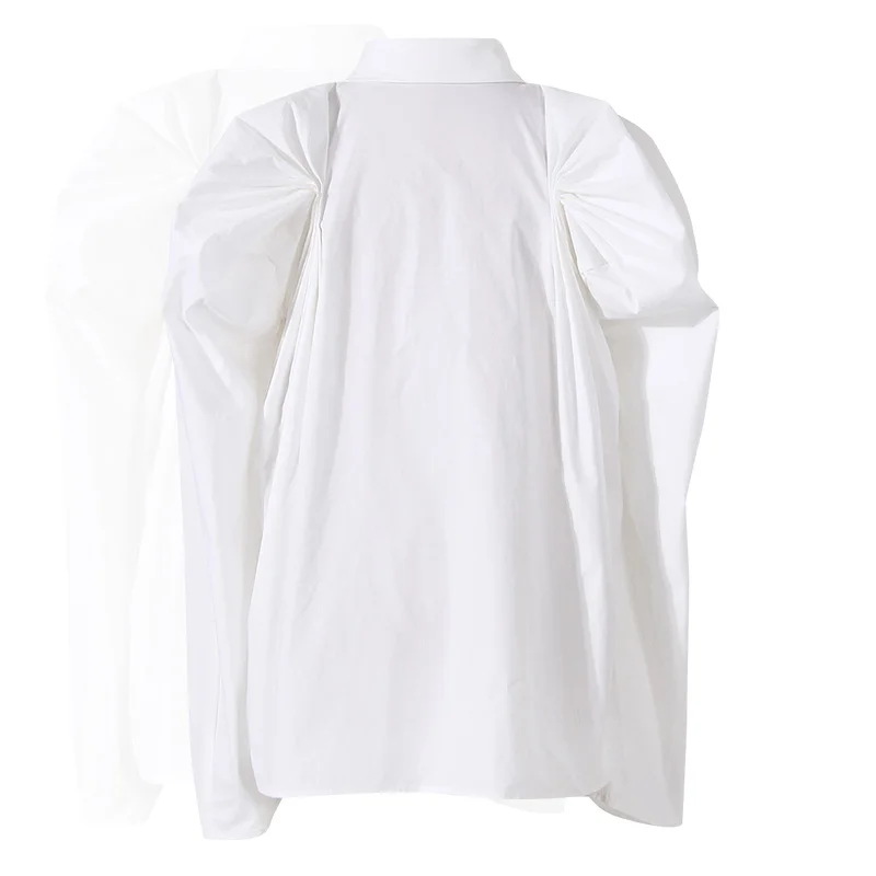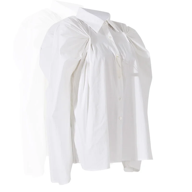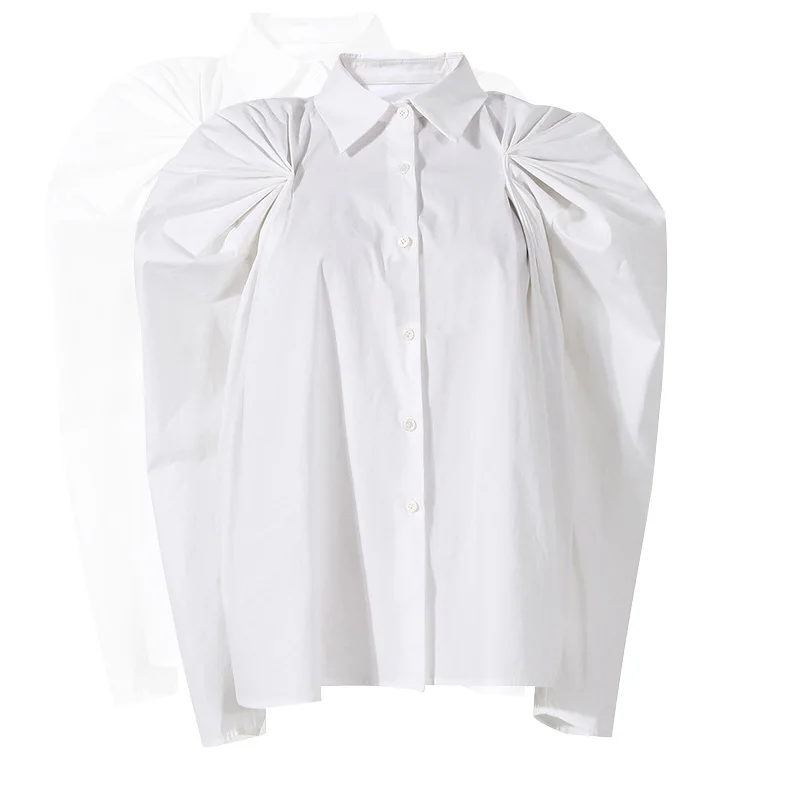 Women's Lapel Top Spring Raglan Sleeve Single Breasted Puff Sleeve Pleated Outline Solid Shirt