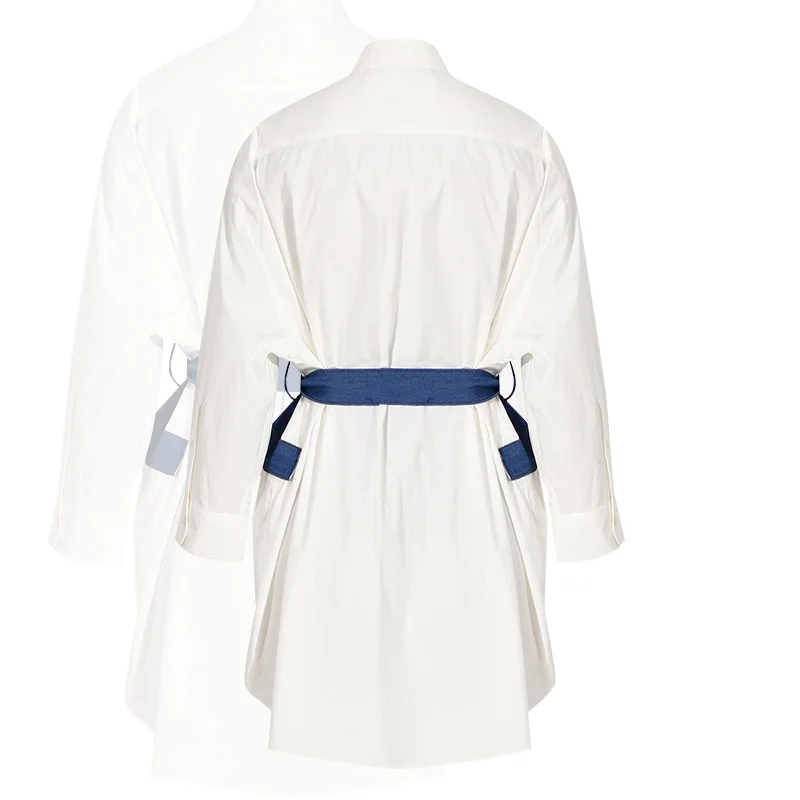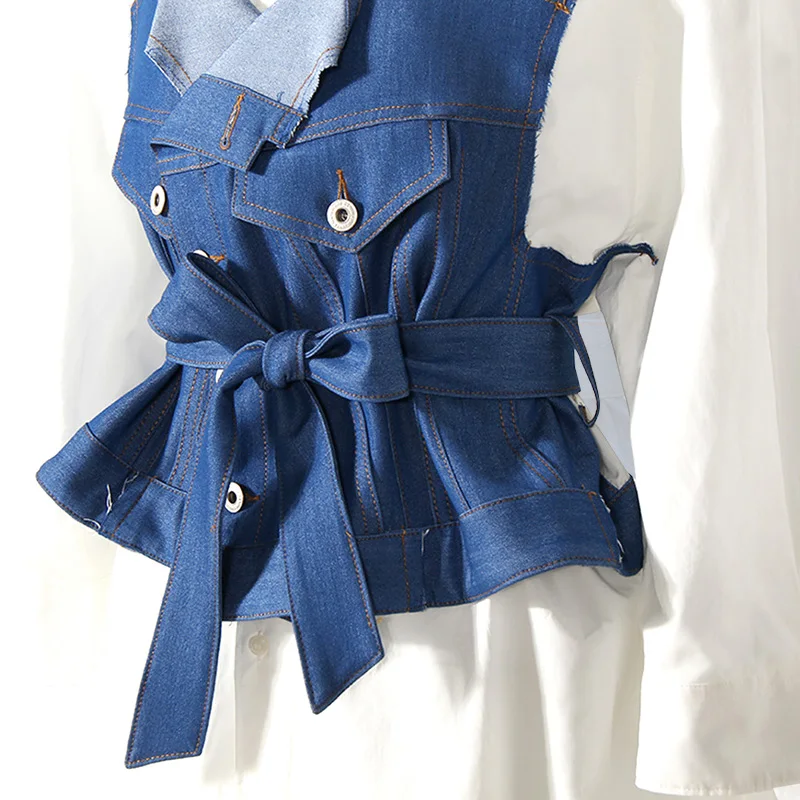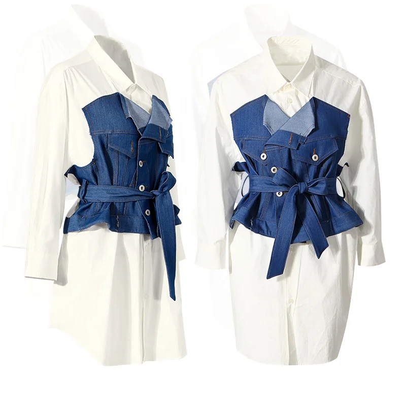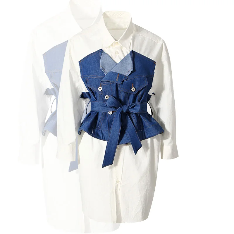 Denim Tube Top Stitching White Shirt Jacket Women's Spring and Summer New Fashion Two-piece Dress