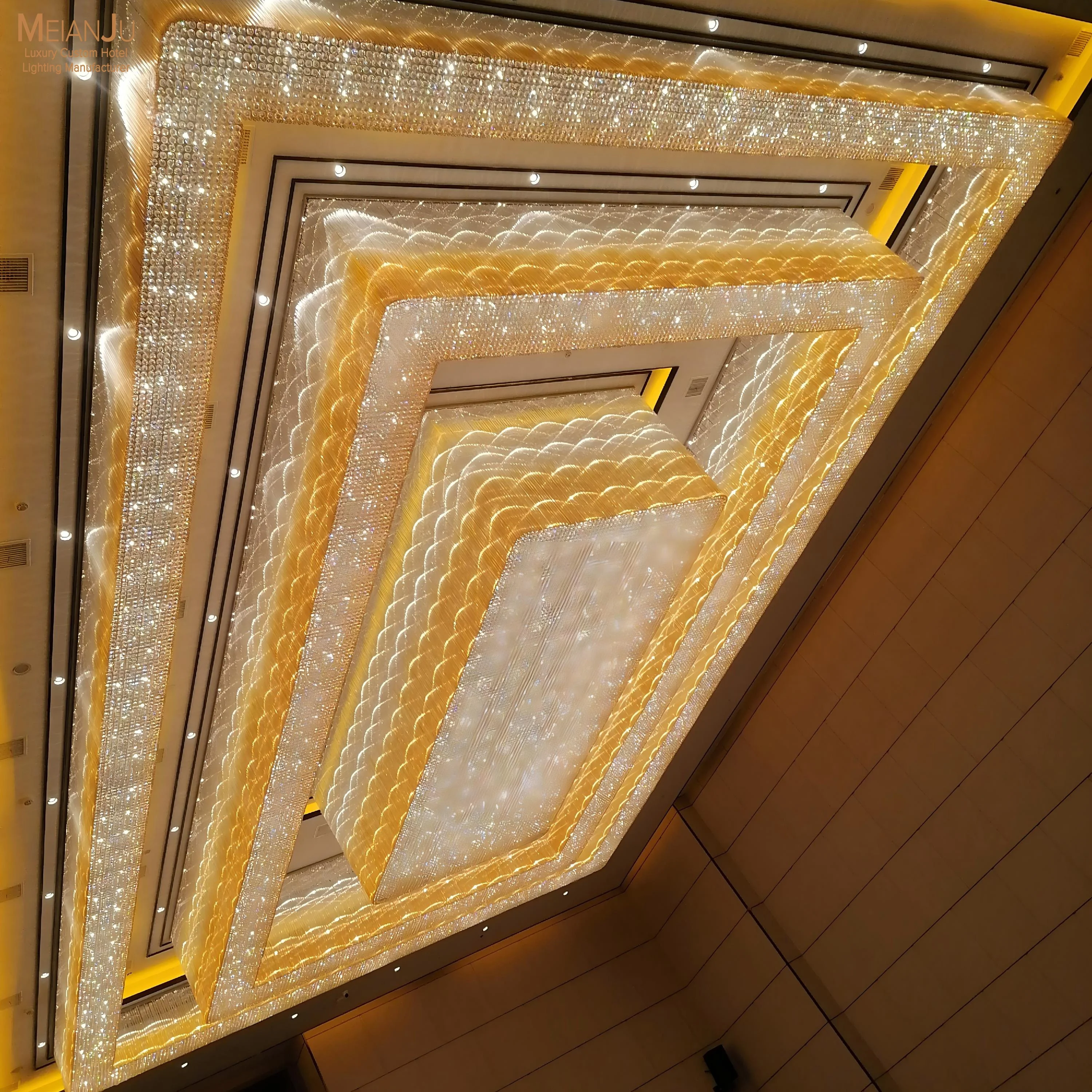 Wedding Hall Chandelier Hotel Hanging Pendant Light Customized Amber Crystal Chandelier Lighting for Lobby