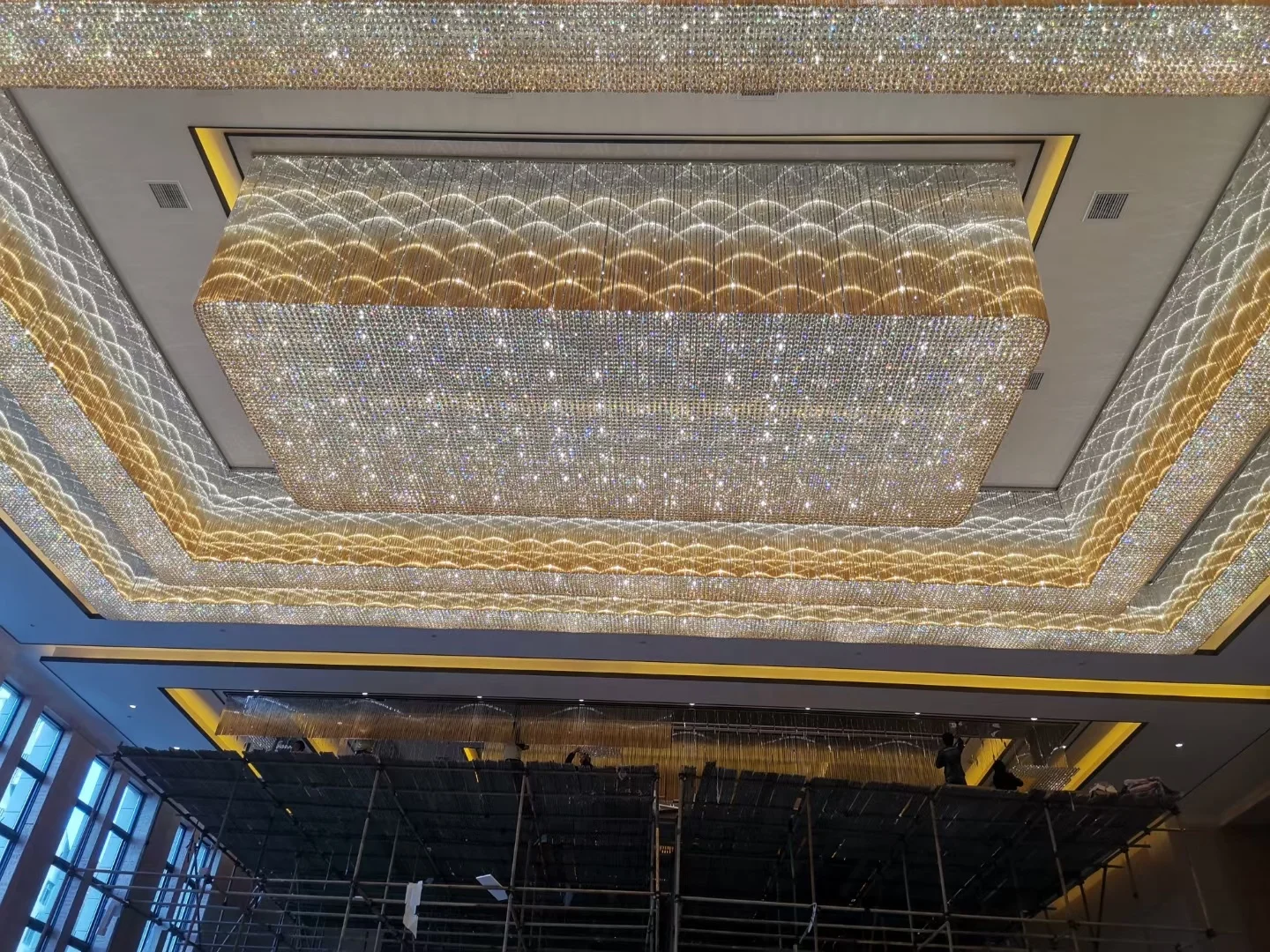 Zeal Lighting Hotel Lobby Hall Decorative Large Hanging Light Customized Long Gold Crystal Elegant Chandelier