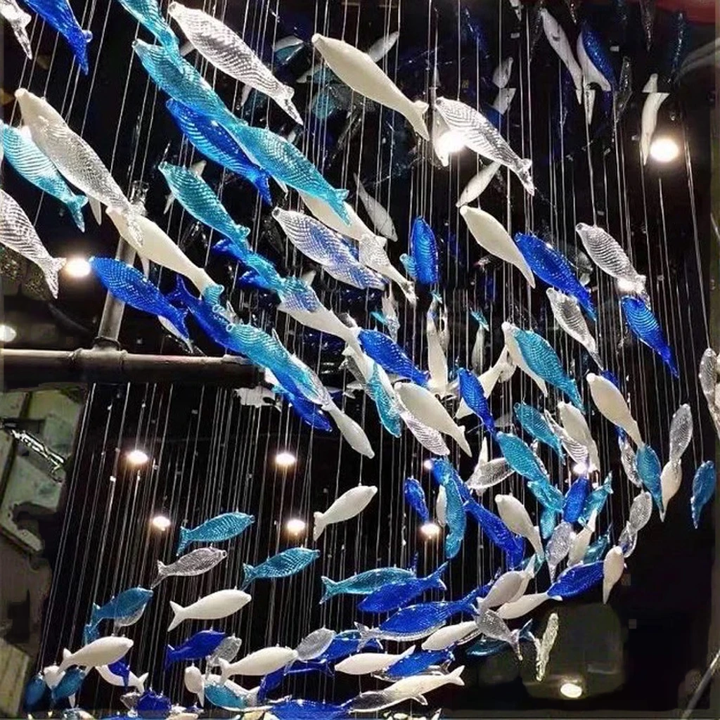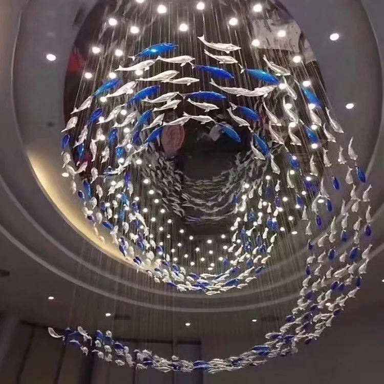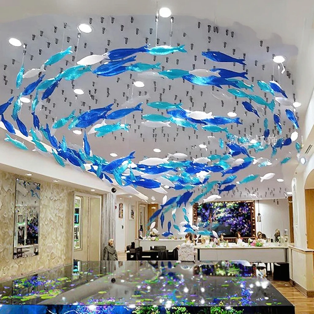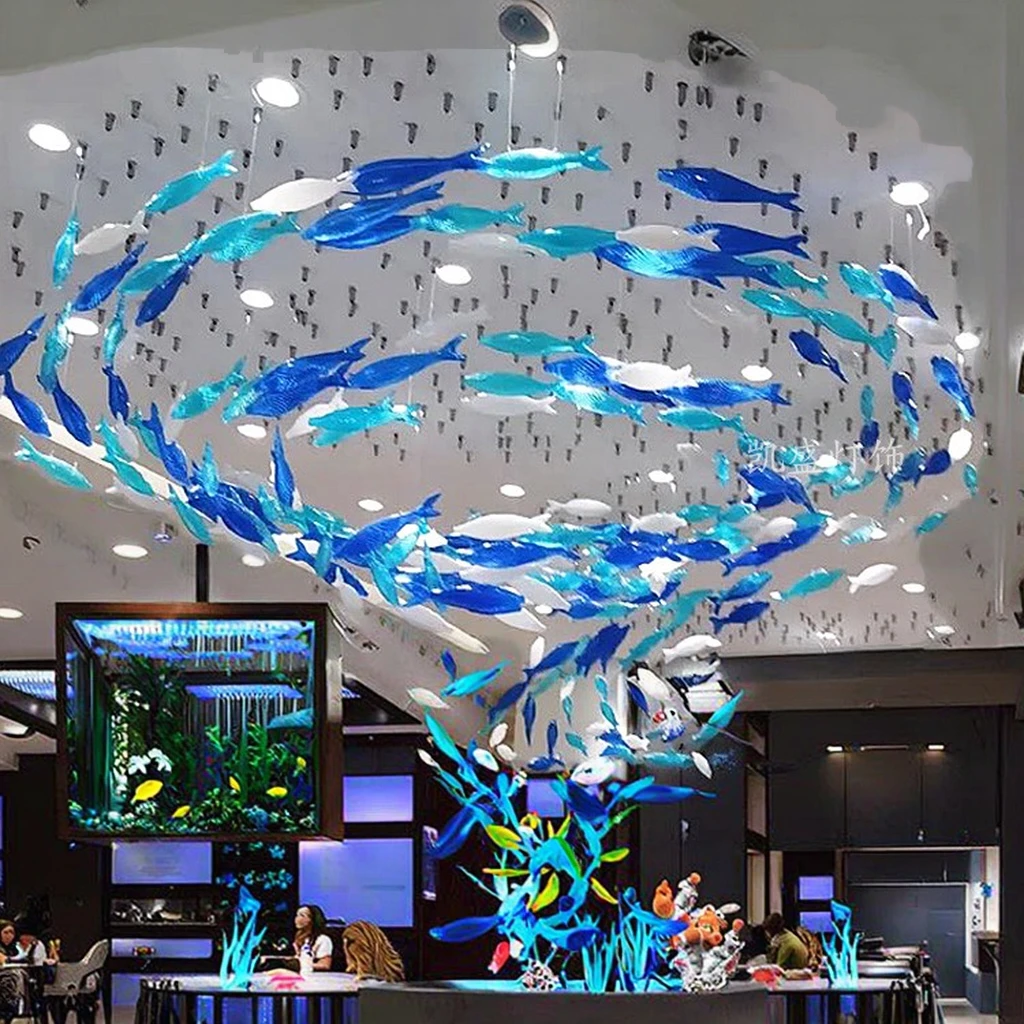 Custom Rectangle Design Fish School Aquarium Chandelier Creative Light Art for Office & Hotel Lobby Glass Pendant Lights