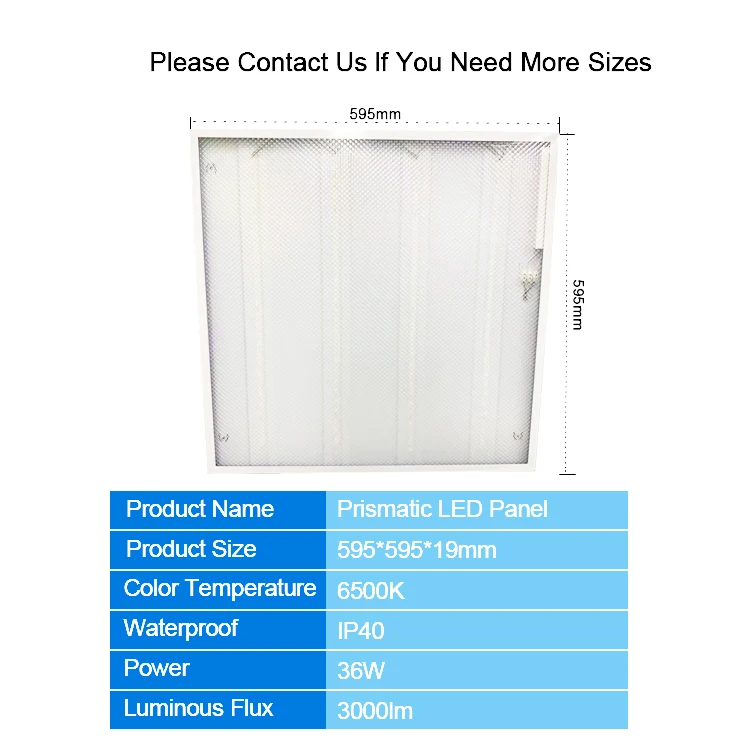 Vertak Commercial Indoor Use Offices 595x595x19 mm Square 36 W 6500K IP40 Glanzen Prismatic LED Panel Led Light