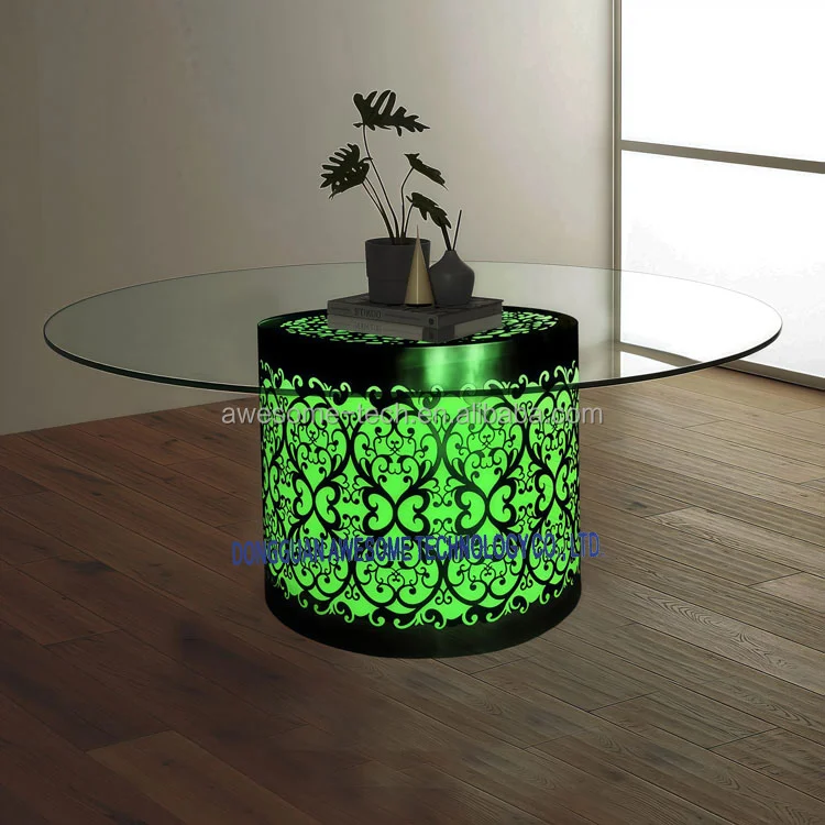 Hot Selling Modern Glowing Indoor/Outdoor LED Bar Coffee Dining Table Metal Frame and Acrylic Cylinder Design for Dining Room