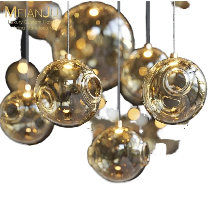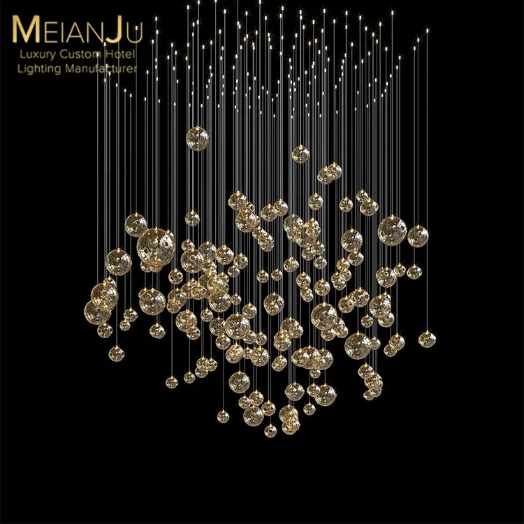 Wedding Hall Chandelier Hotel Hanging Pendant Light Customized Amber Crystal Chandelier Lighting for Lobby