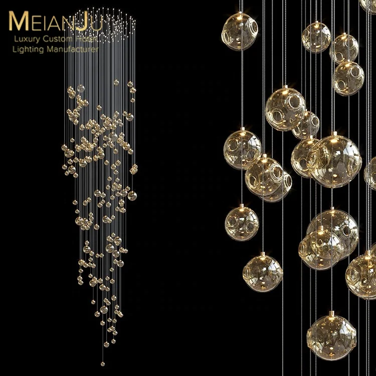 Zeal Lighting Long Stairwell Hanging Pendant Light Staircase Villa Duplex Stair High Ceiling Crystal Chandelier