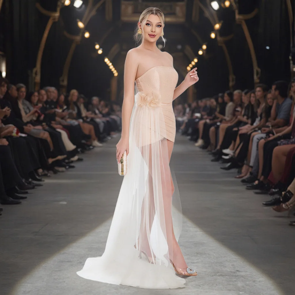 New Women's Dress: Body-hugging Short Skirt, Bustier Women's Dress, Slimming and Sexy Beaded Women's Evening Gown
