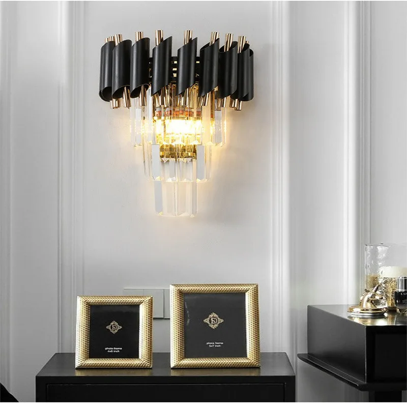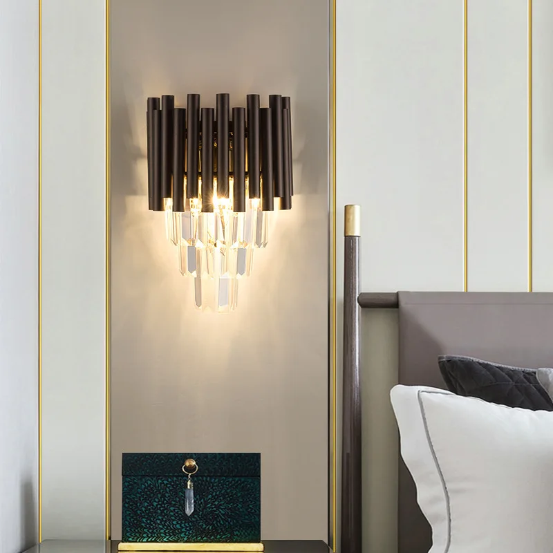 JACKSUN Luxury Crystal Wall Lamp for Living Room Bedroom Bedside Master Bedroom TV Background Wall Bright Aluminum LED