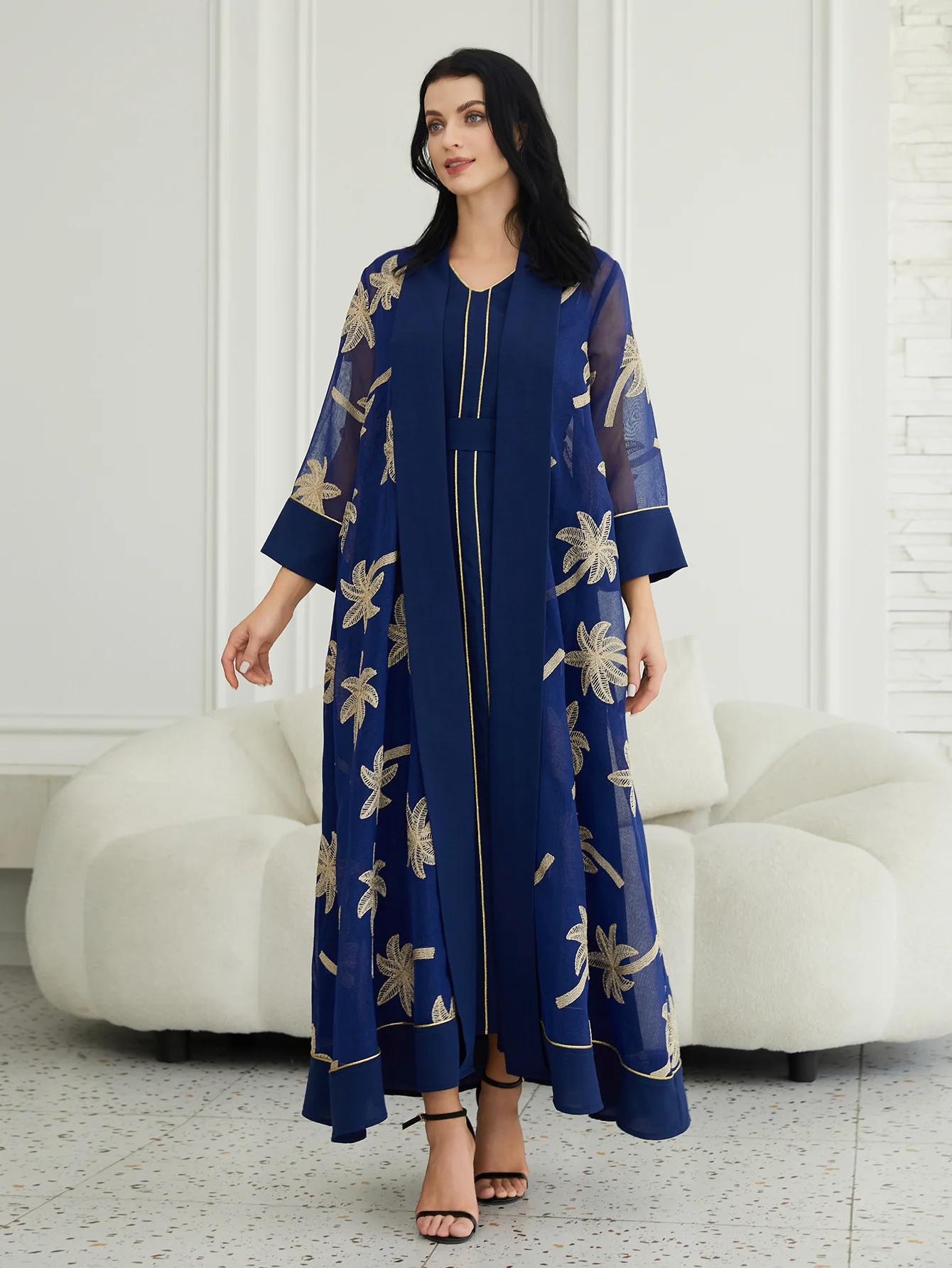 Clothing Manufacturer New Women's Clothing Embroidered Chiffon Fashion Two-piece Cardigan Elegant Muslim Women Dress