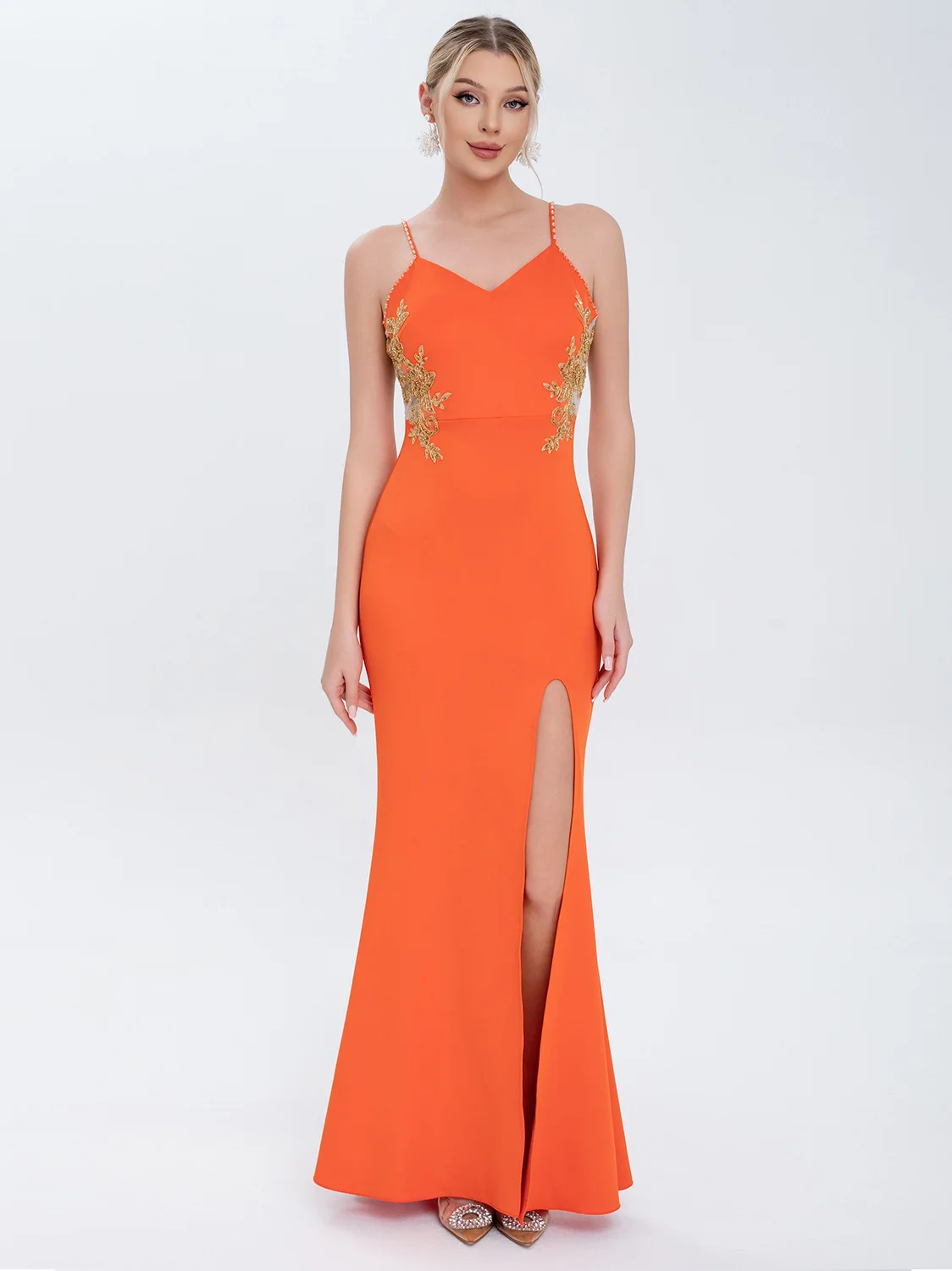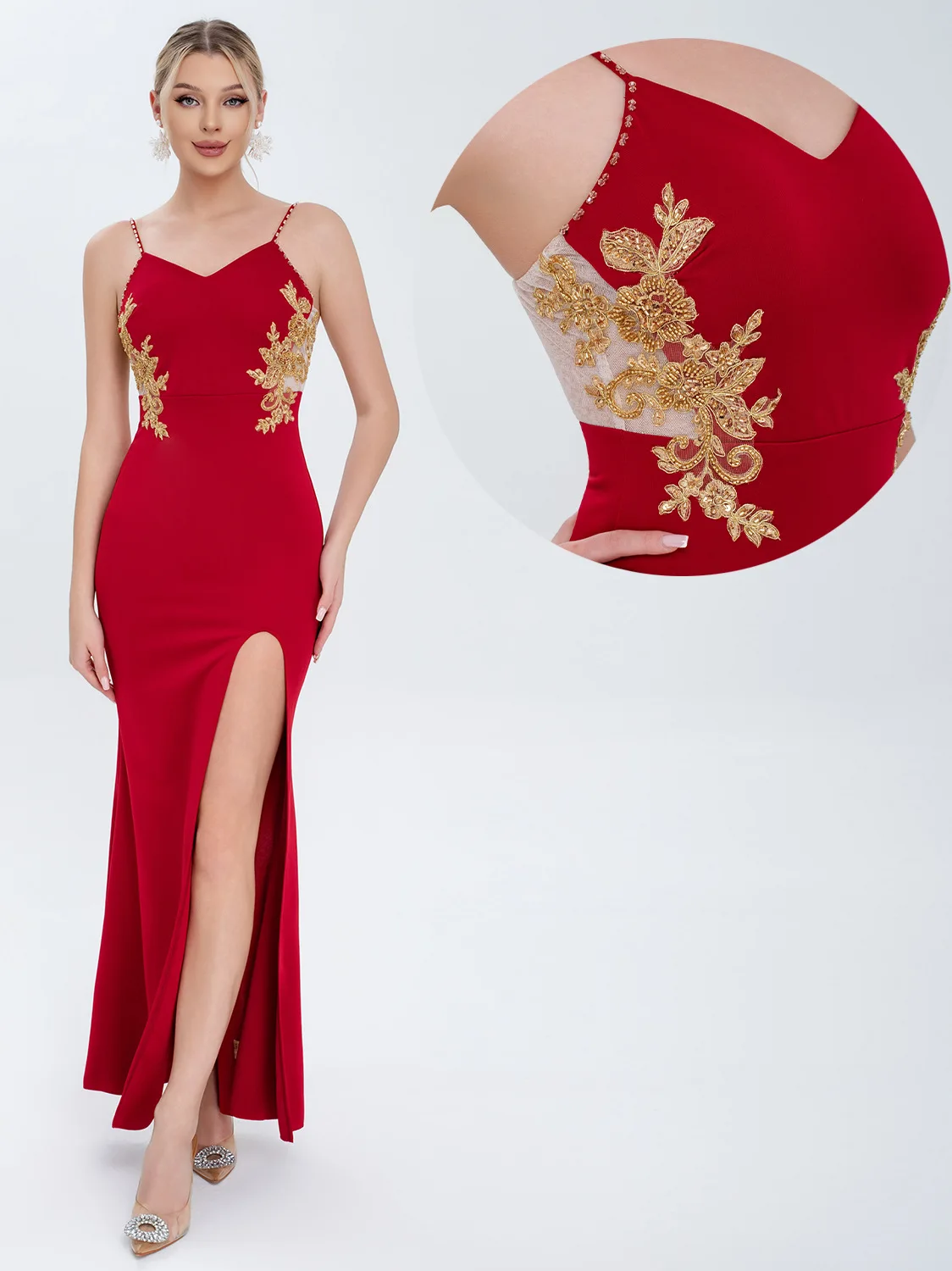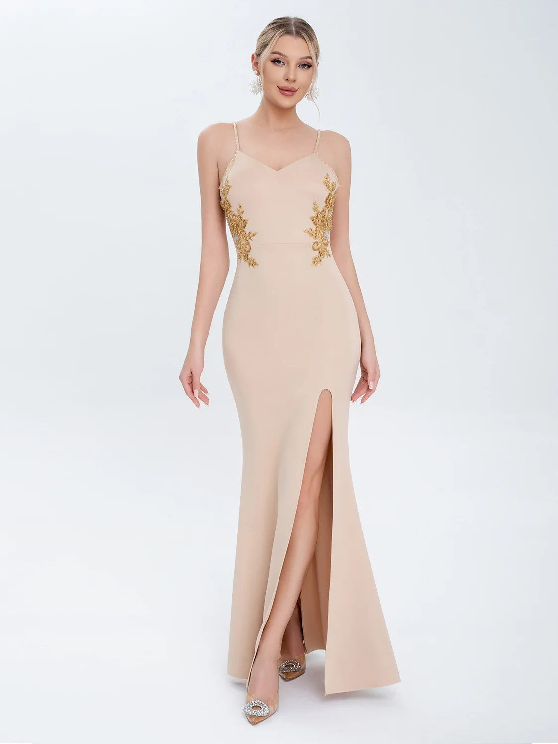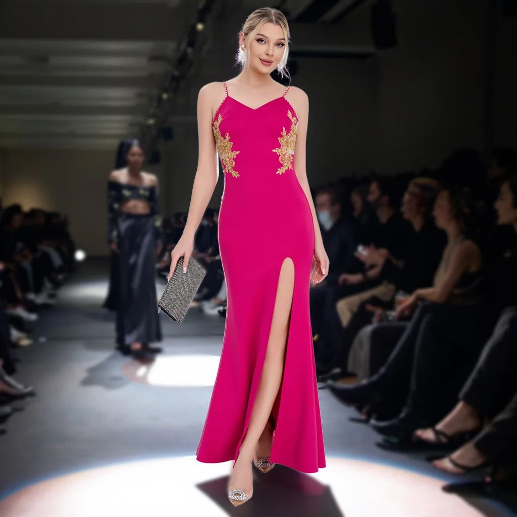 Clothing Manufacturer New Embroidered Net Side-slit Elegant Dress Women's Evening Gown Ladies' Party Wear