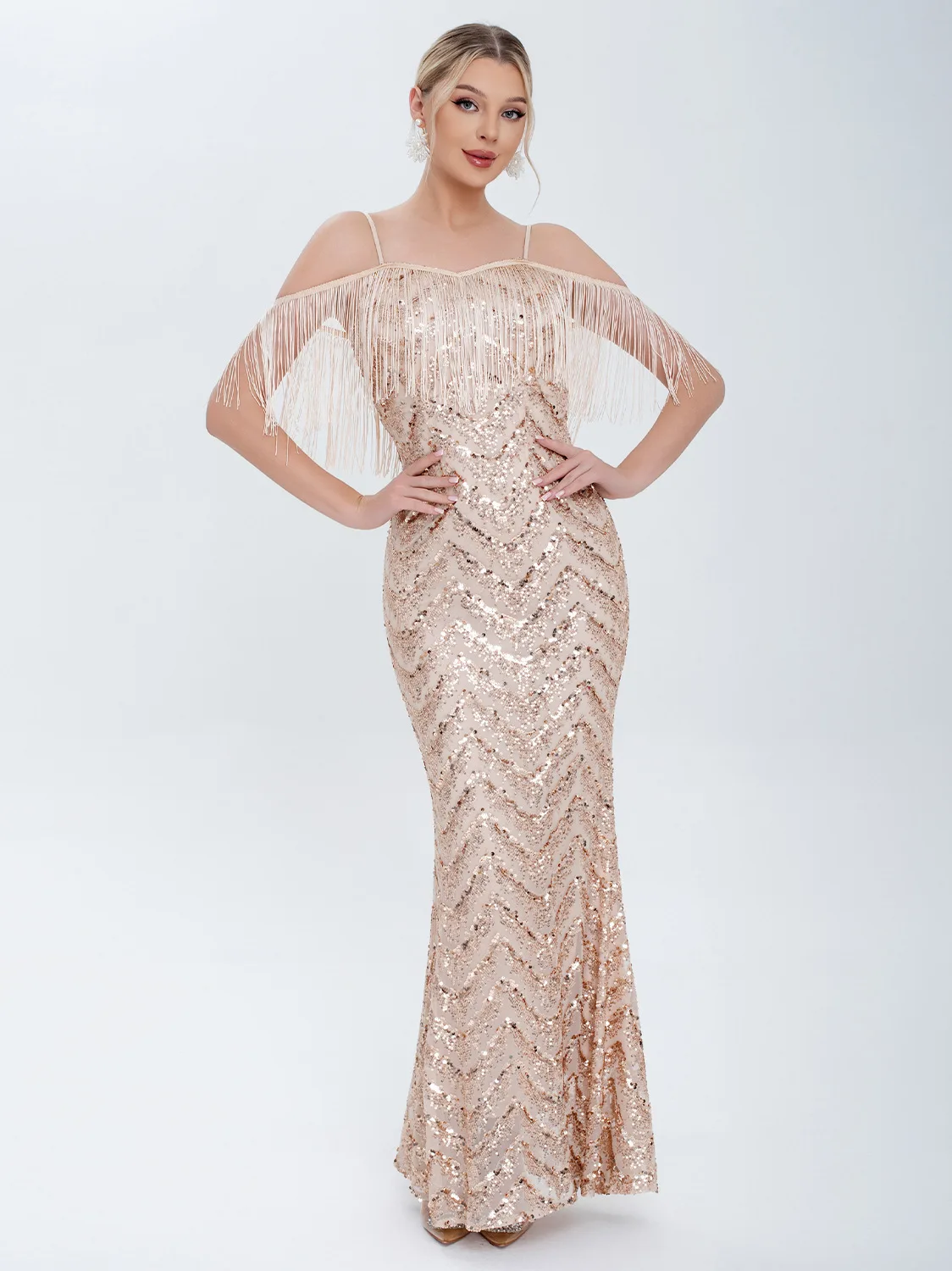 Clothing Manufacturer Backless Sequin Tassel Women's Evening Gown, Elegant Women's Dress Women's Party Wear