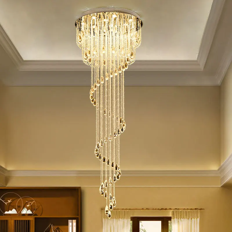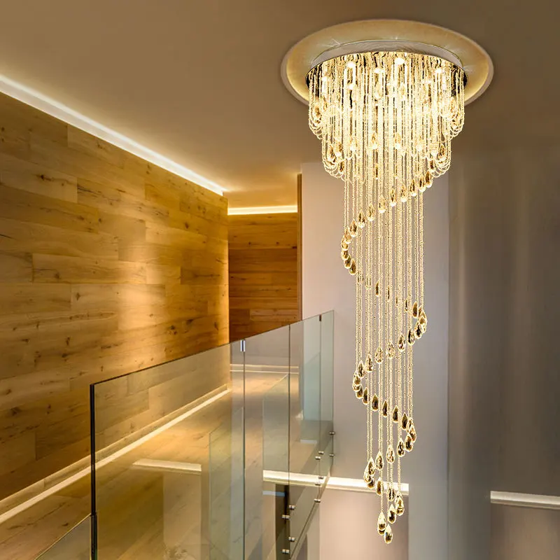 Zeal Lighting Long Stairwell Hanging Pendant Light Staircase Villa Duplex Stair High Ceiling Crystal Chandelier