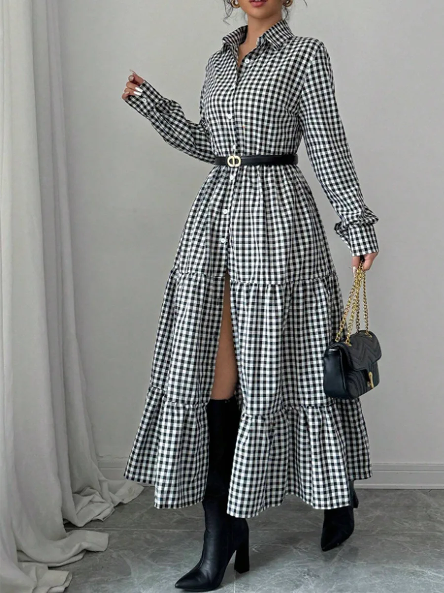 2025 Autumn New Women's Fashion Plaid Cardigan Dress Loose Patchwork Casual Dress