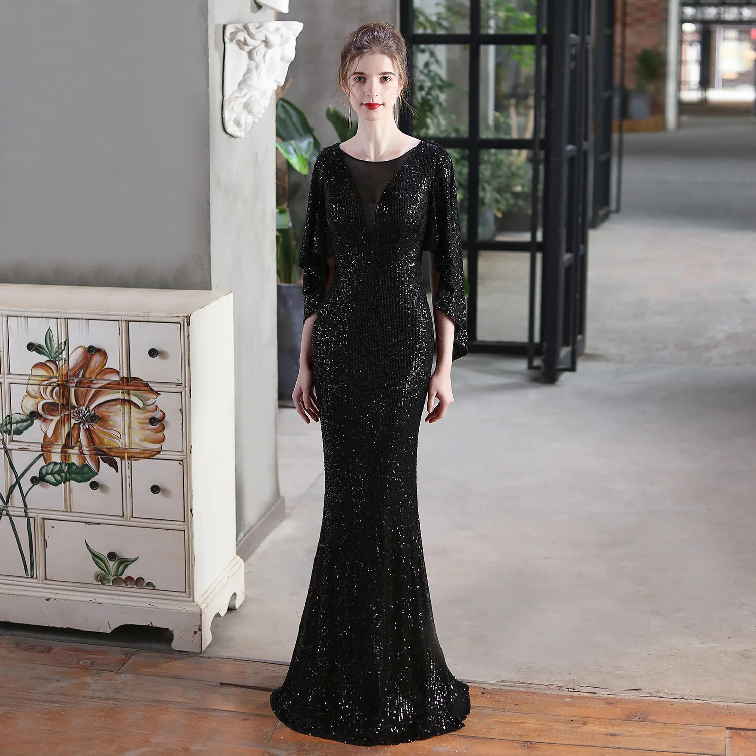 New Mermaid Tail Women's Dress with Angel wings and Sequin Embellishments, Suitable for Women's Banquet Gowns.