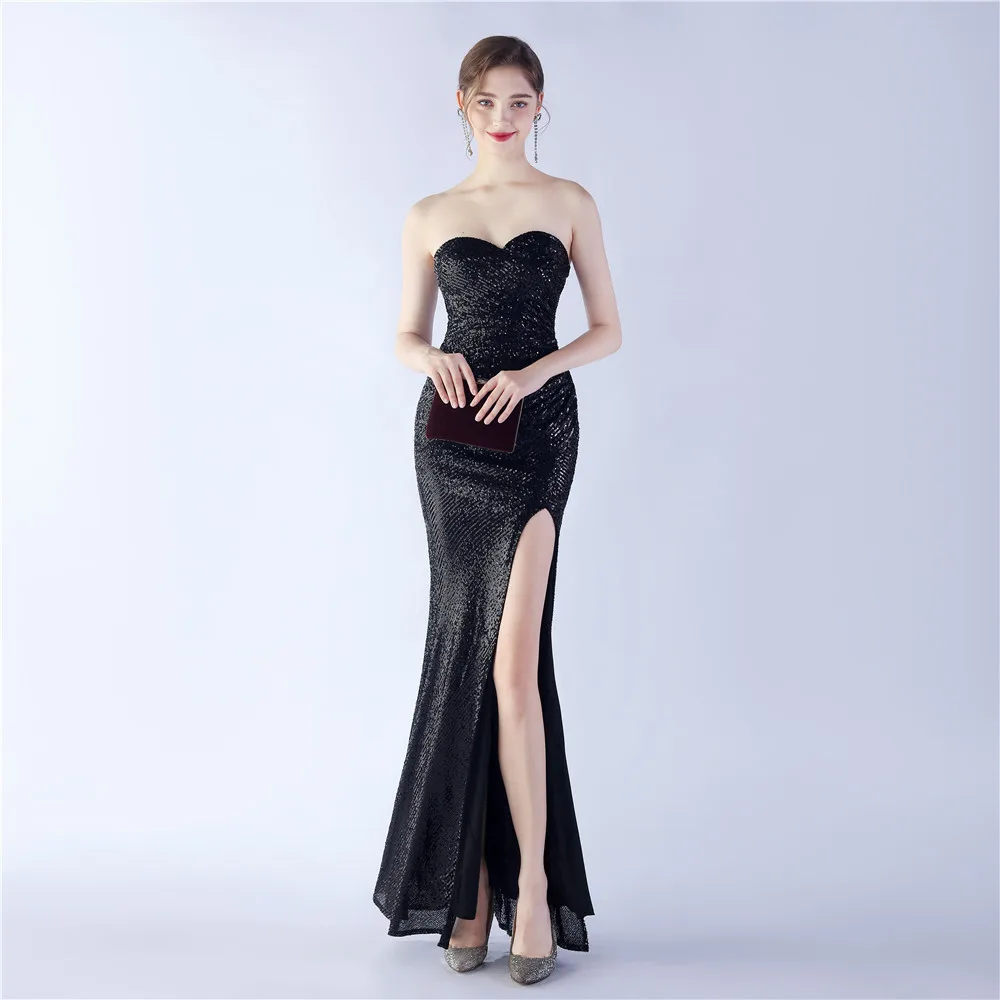 ZYHT 73907 Custom Design Long Sleeve High Neck Fashion Pleated Crystal Beads Ruched Knot High Slit Sexy Luxury Evening Dress