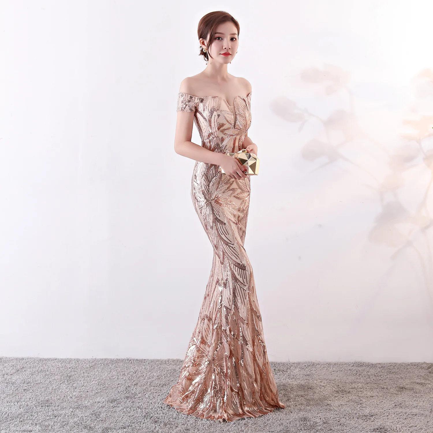 New Stylish and Elegant Evening Dress, Sleeveless Off-shoulder Sexy Women's Evening Gown