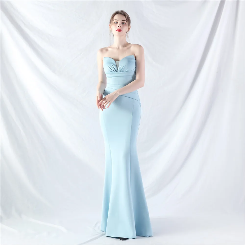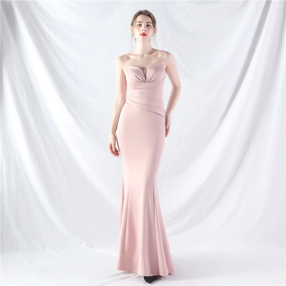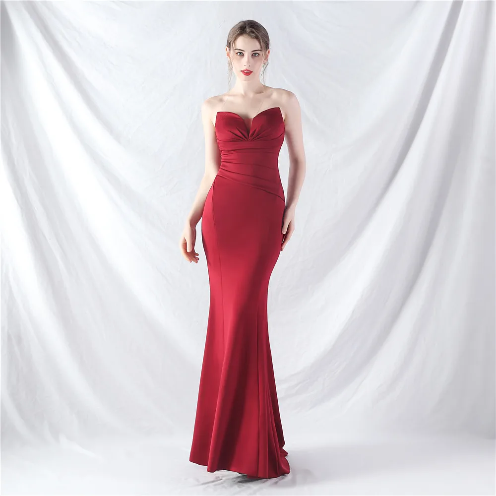 New Style Wrap Chest Sexy Dress, Satin Fabric, Fashionable Off-shoulder Evening Gown
