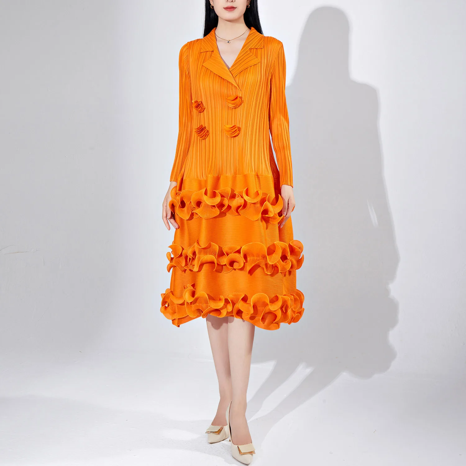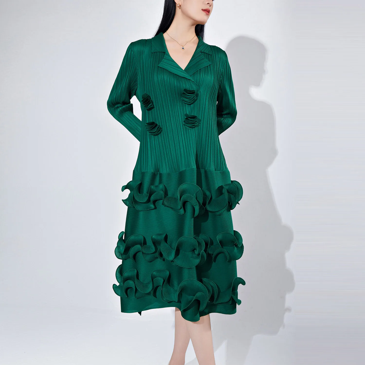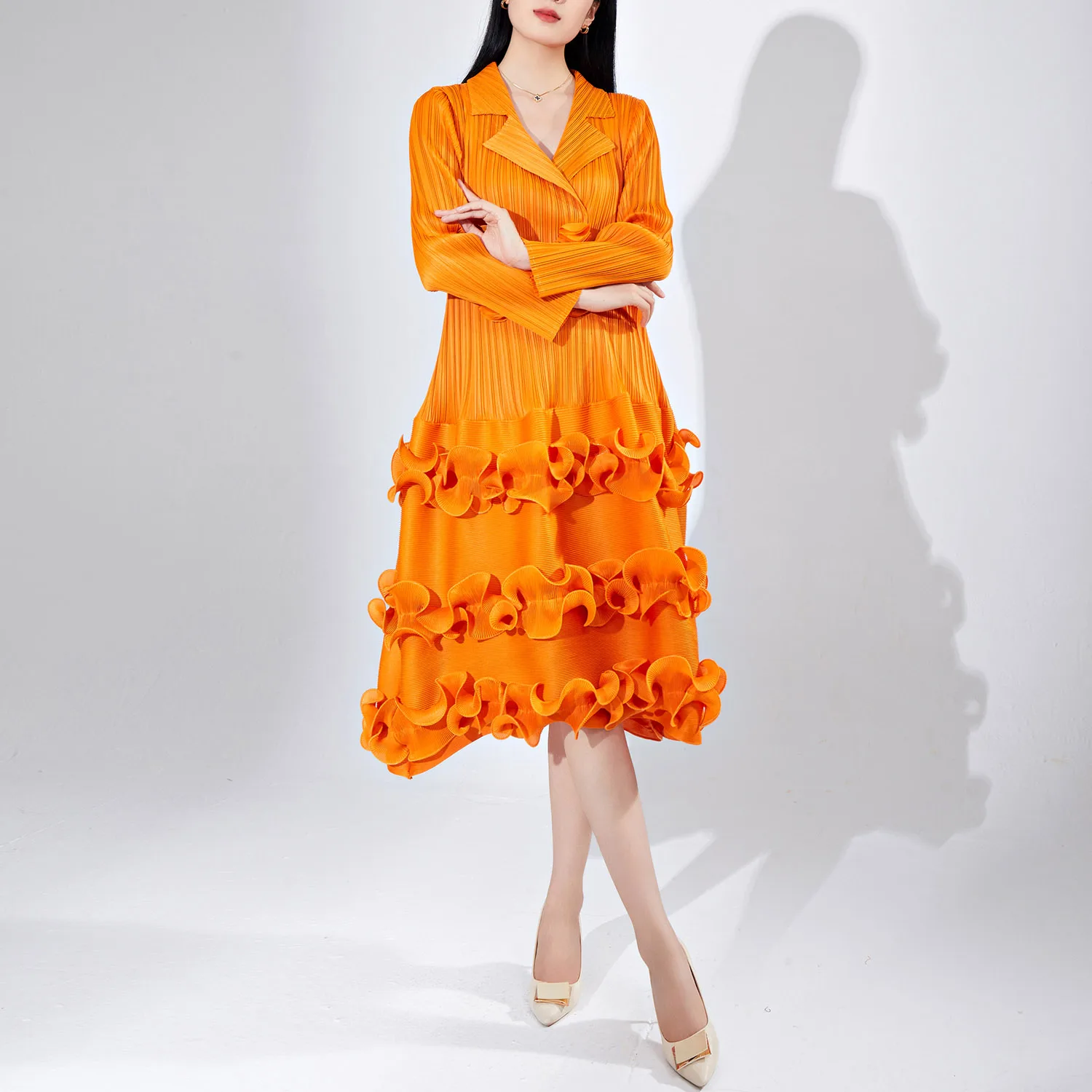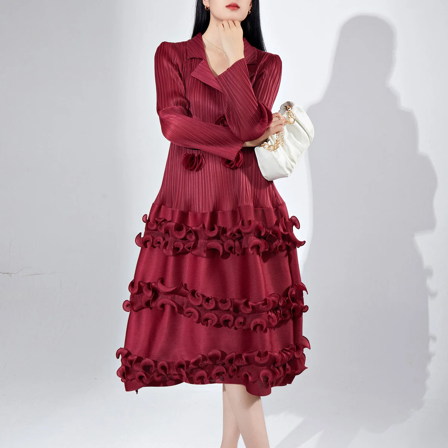 Women's Elegant Dress With Miyake Pleats Long Sleeve Pleated Hem Cake Dress High Quality Elastic Design Fashionable Dress