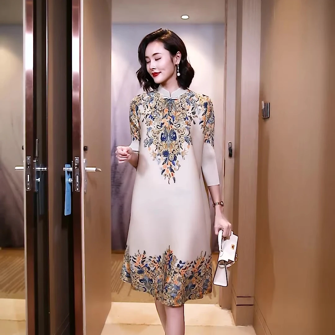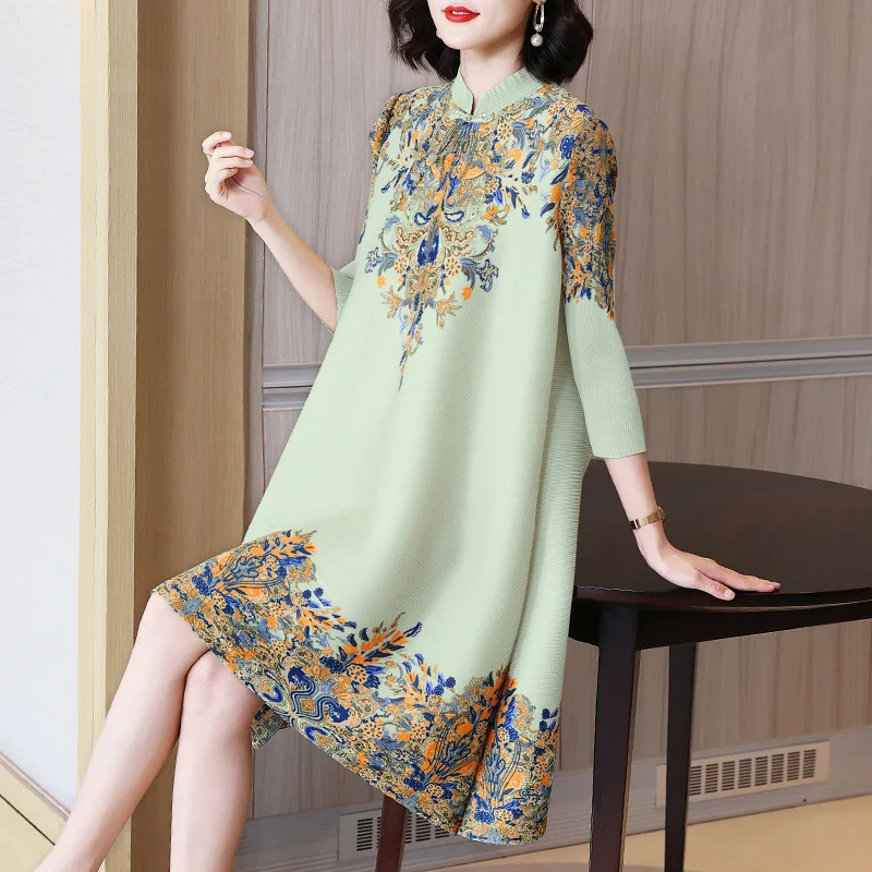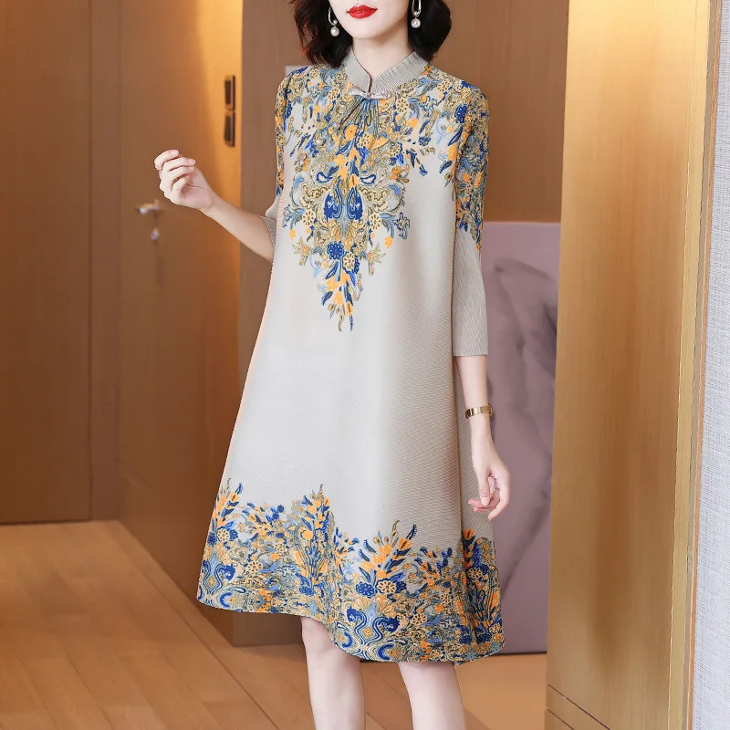 Autumn Latest Design Plus Size Women's Clothing European and American Style Fashionable and Retro Printed Pleated Dress