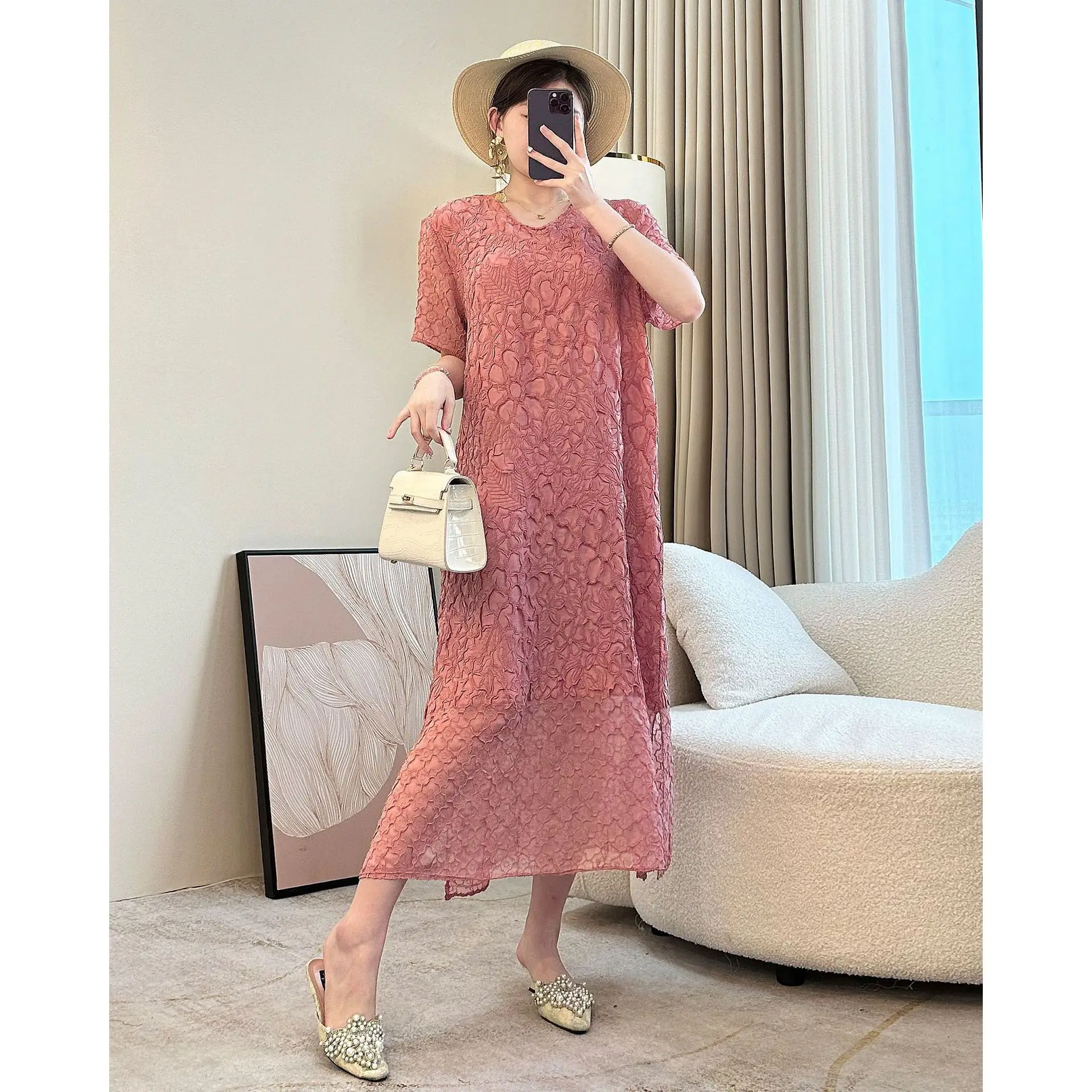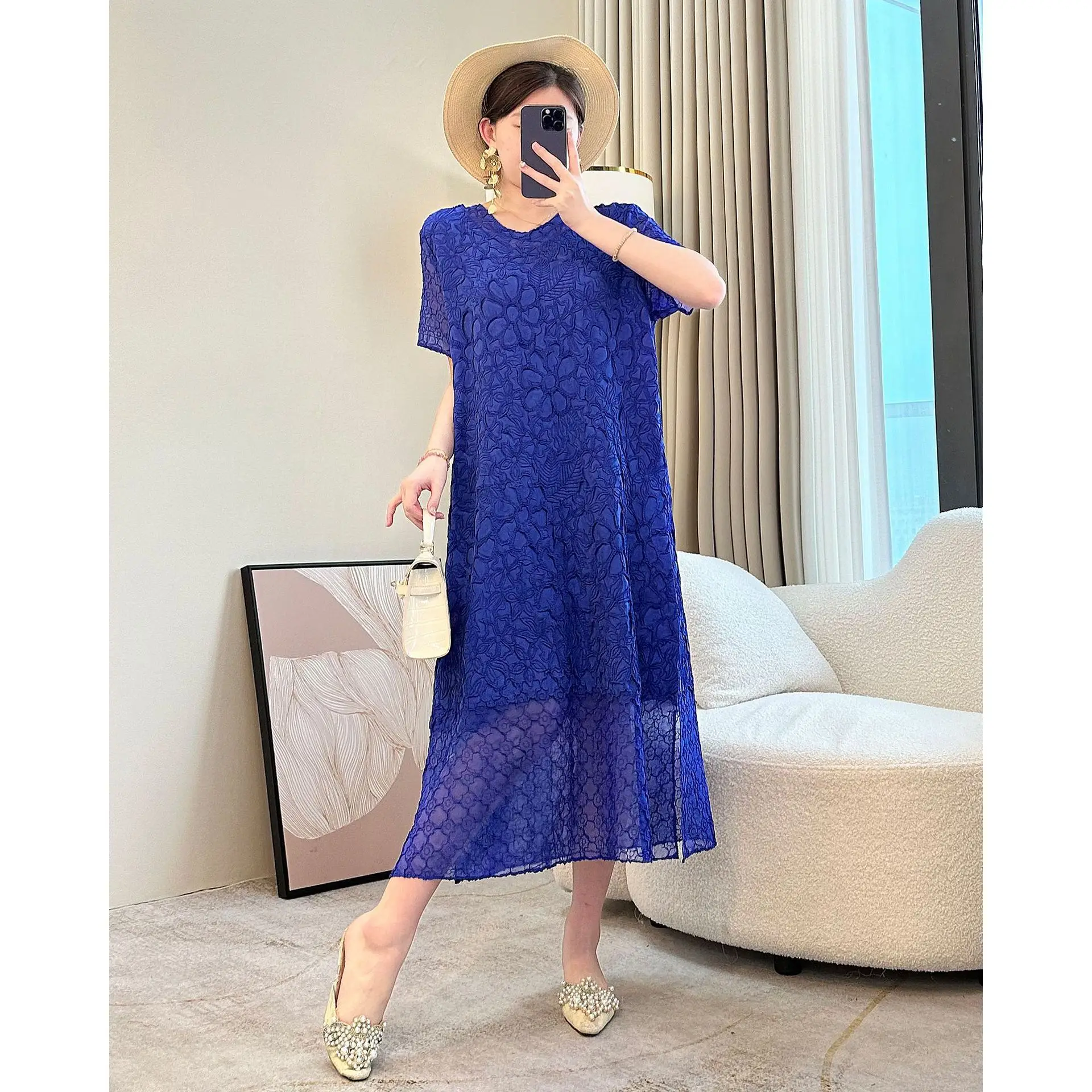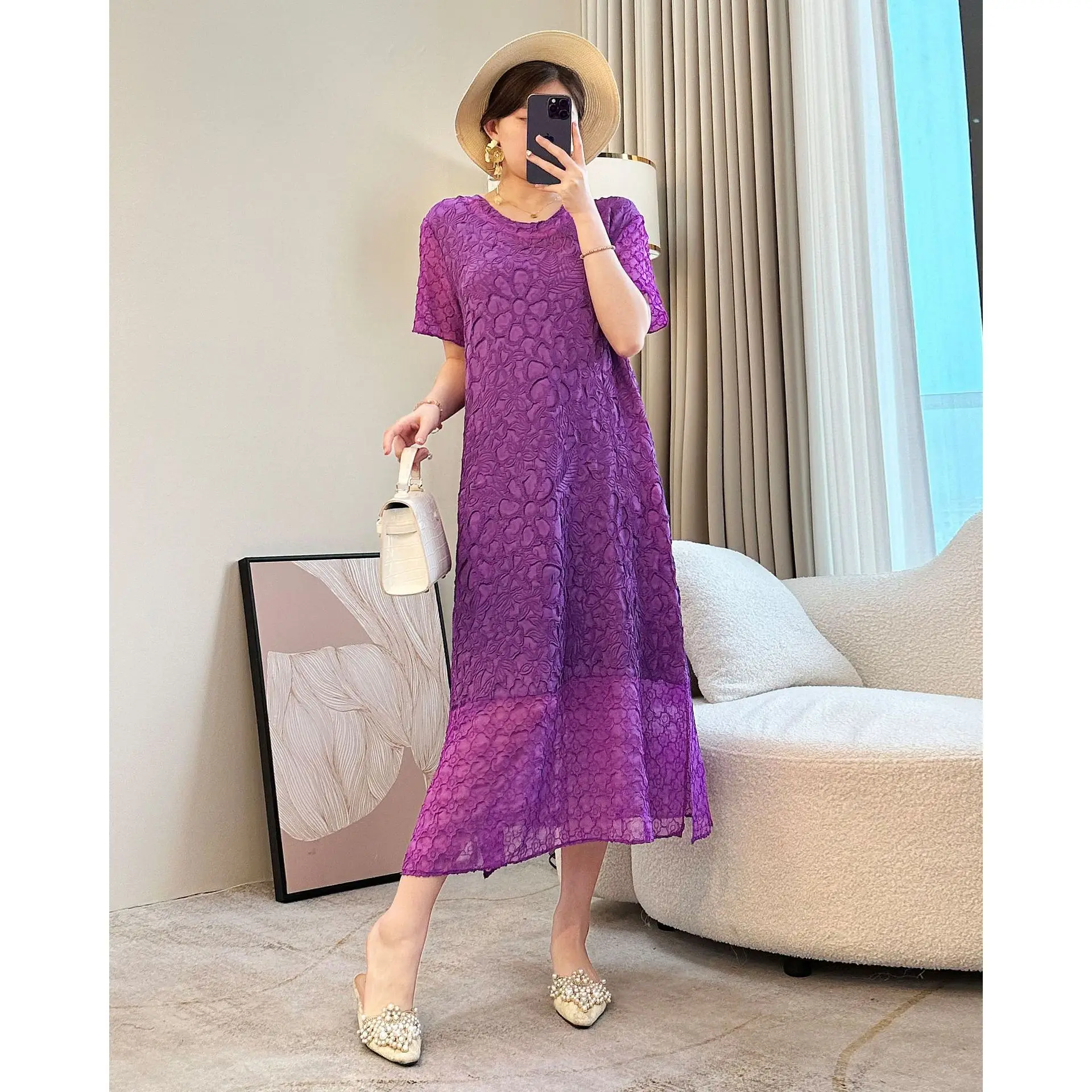 Factory Wholesale 2025 Summer New Style Gradient Pleated Dress Elegant and Fashionable Plus Sized Casual Women's Dress