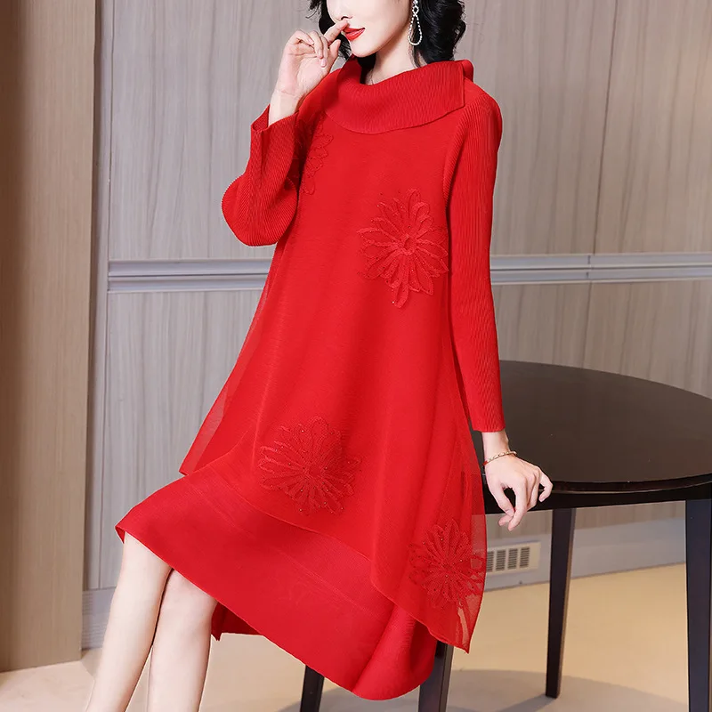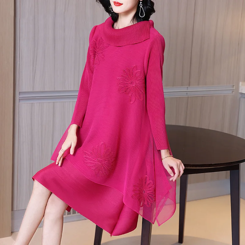 Miyake 2025 Autumn New Fashion Casual Pleated Dress Women's Clothing in Large Sizes Plus Size Dresses