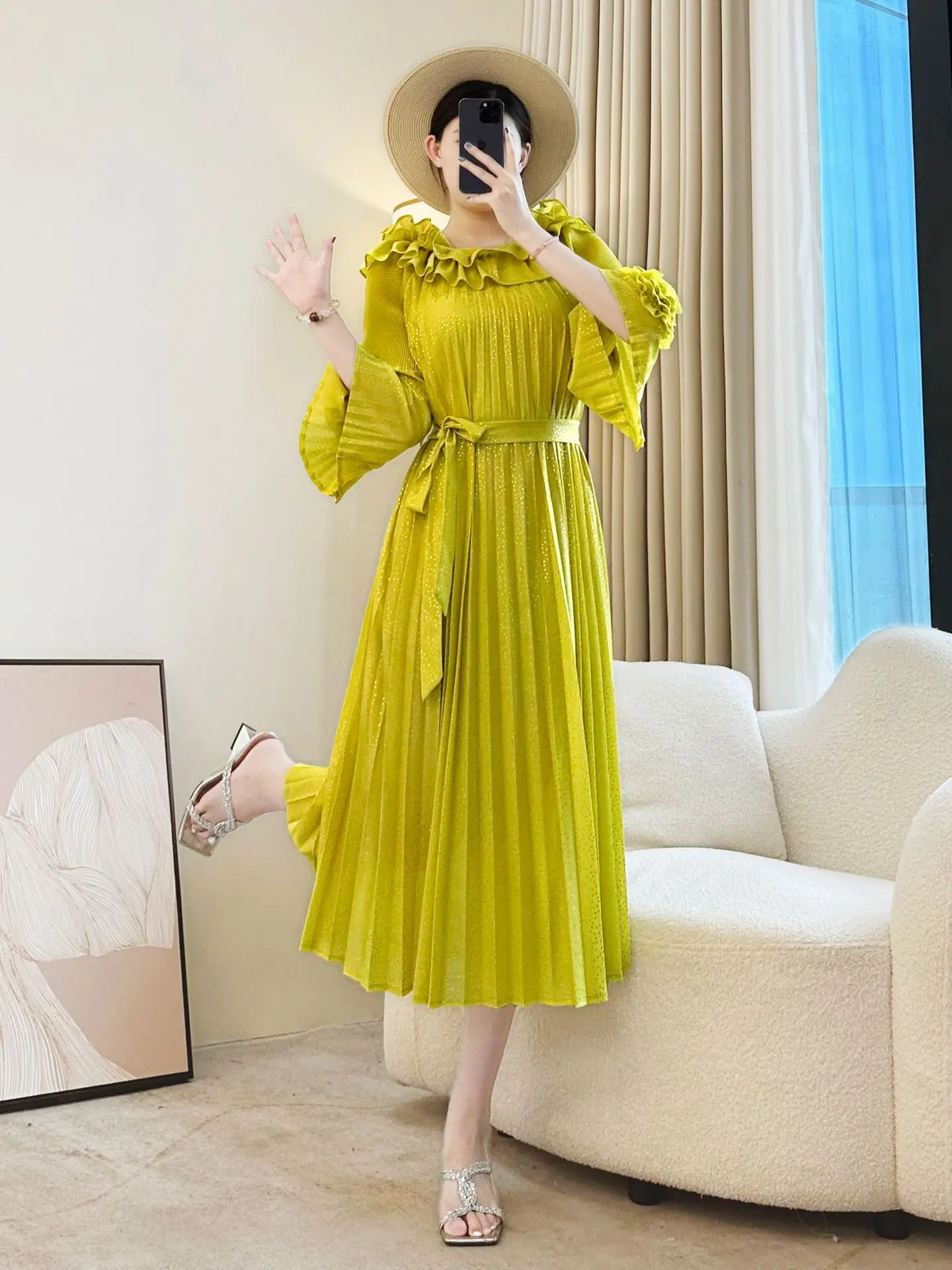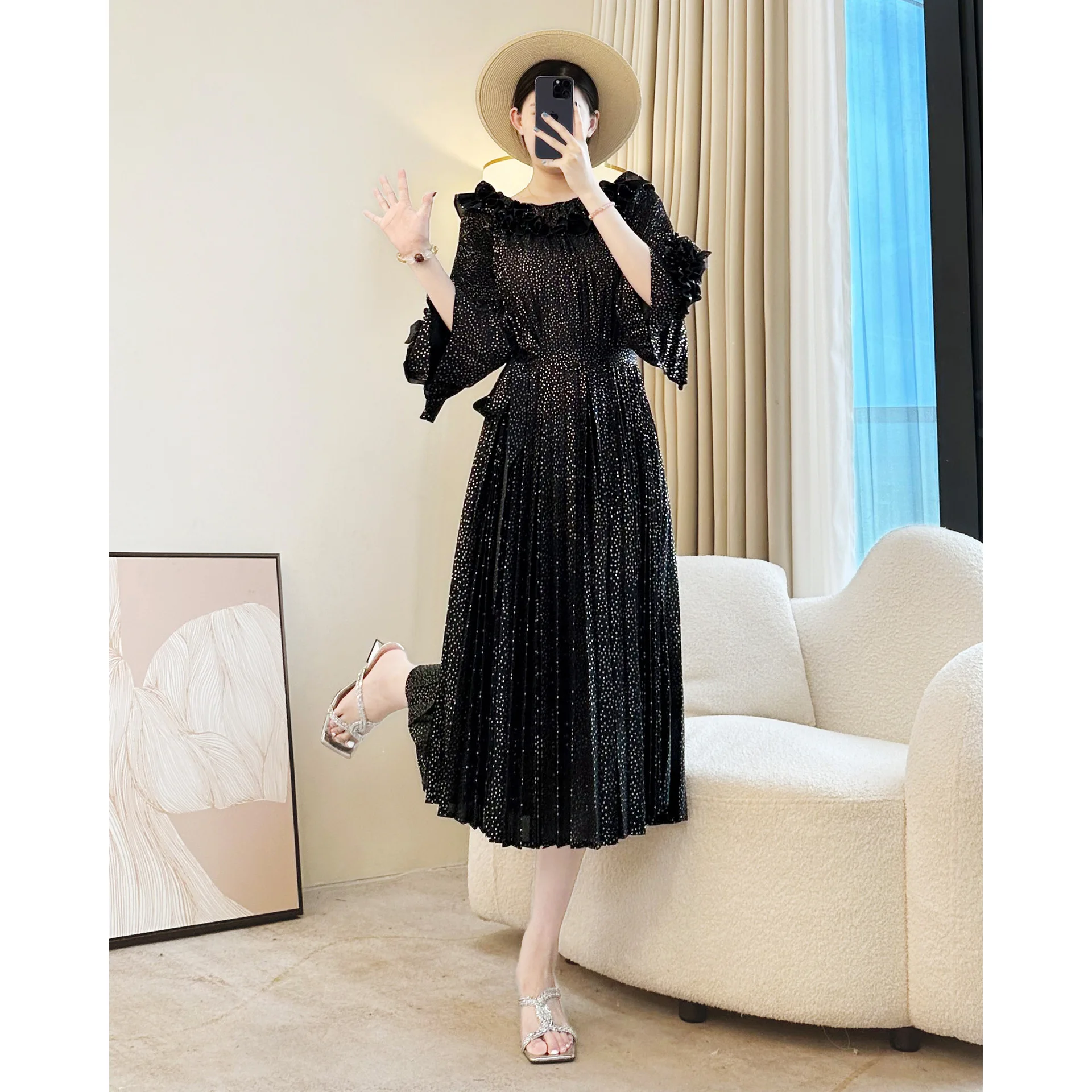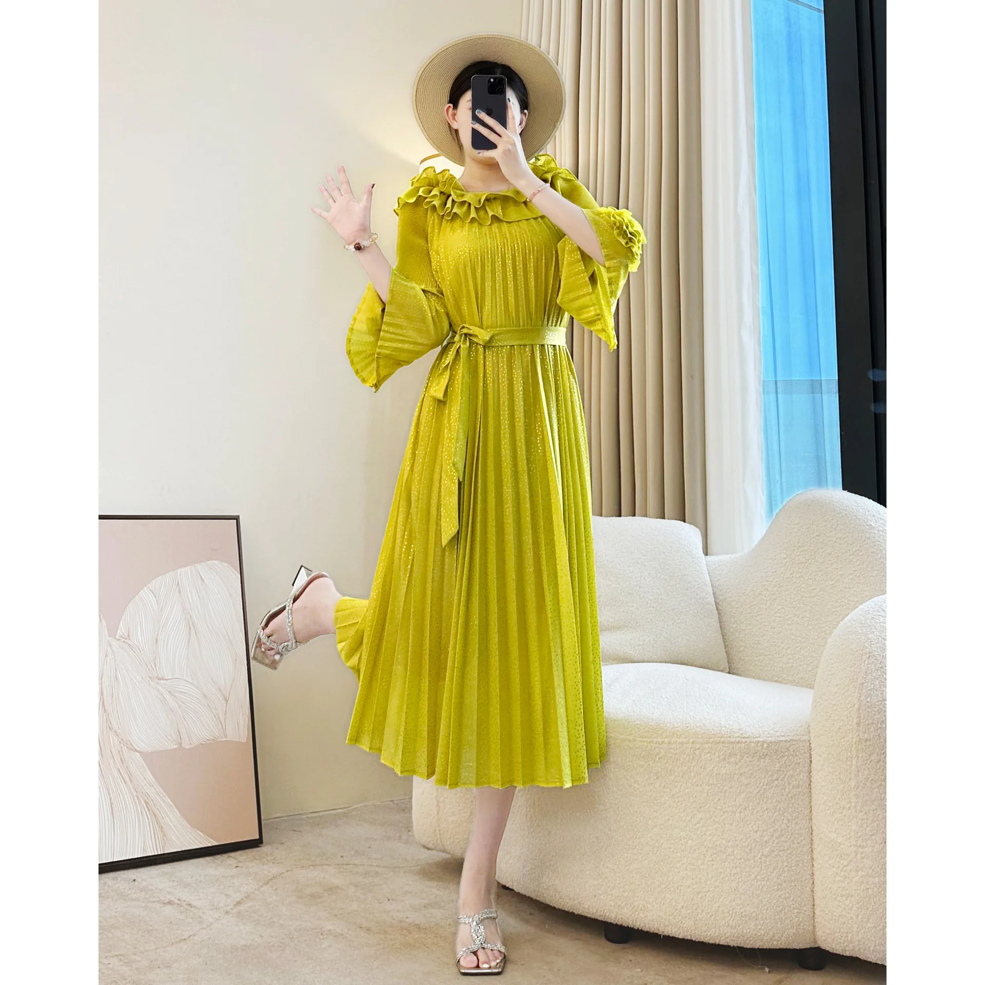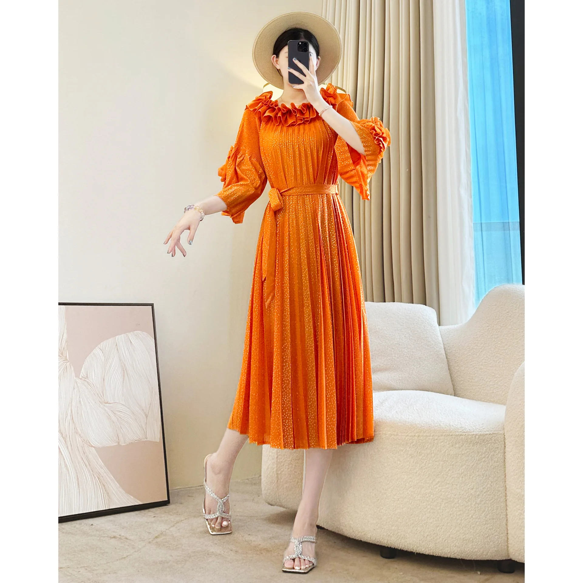 Miyake Women's Casual Pleated Dress High-End New Autumn Collection Available in Large Sizes Factory Outlet