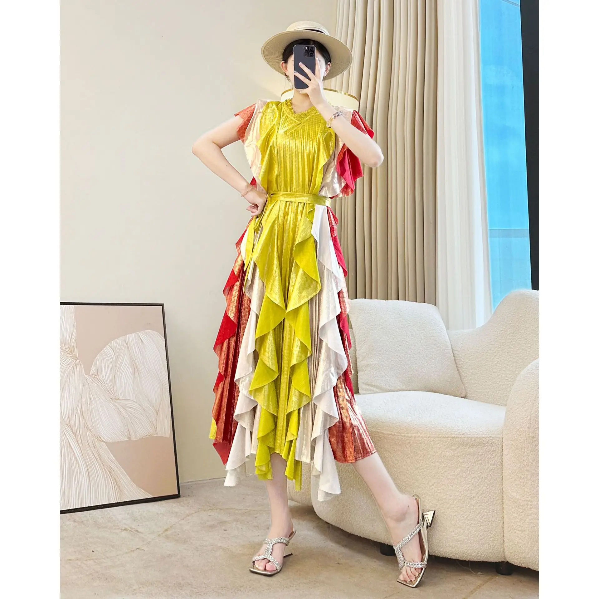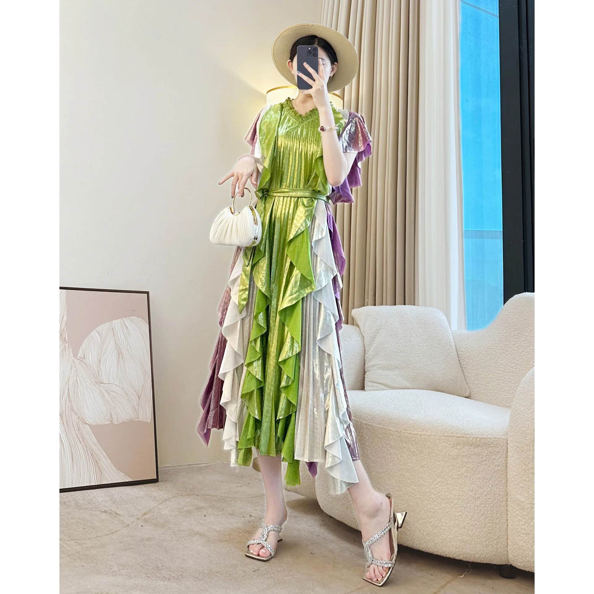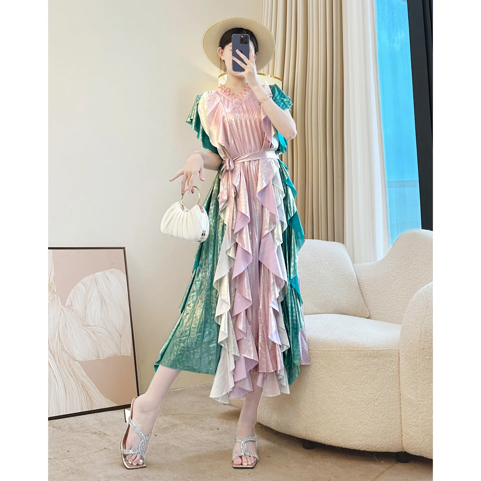 Miyake High-End Casual Lady Dress with Elegant Pleated Gradient Ruffled Waist Gradient Ruffled Waist Dress
