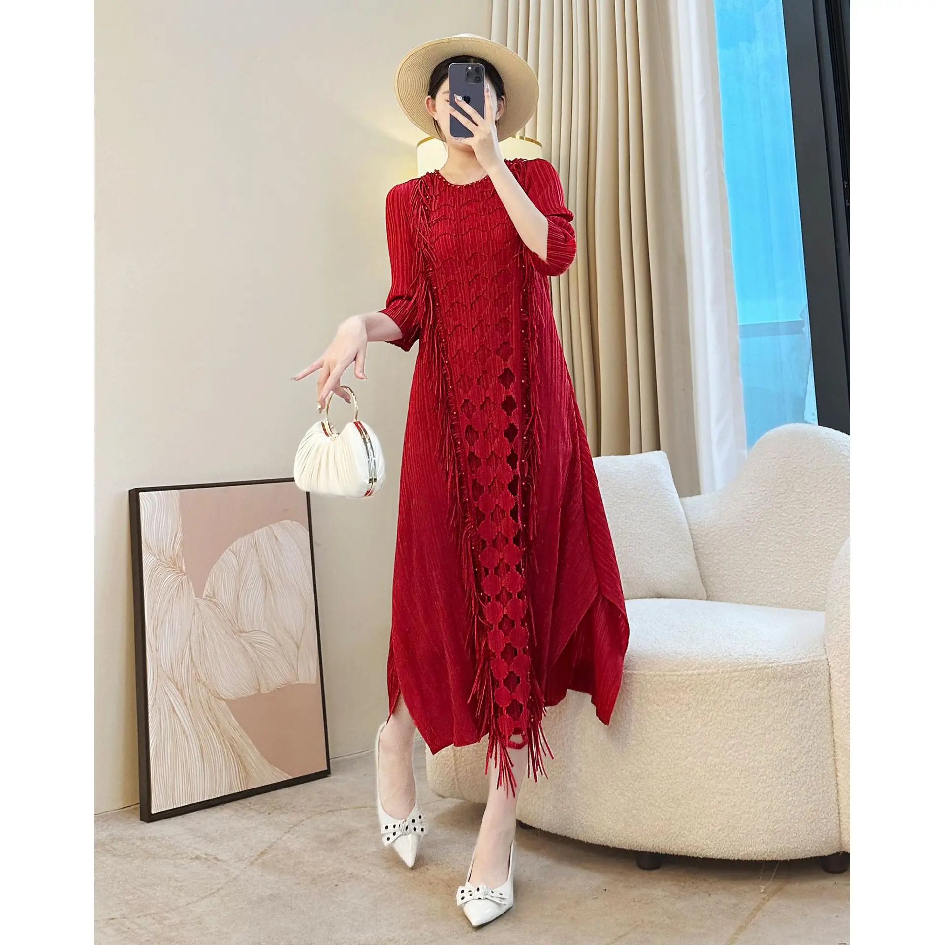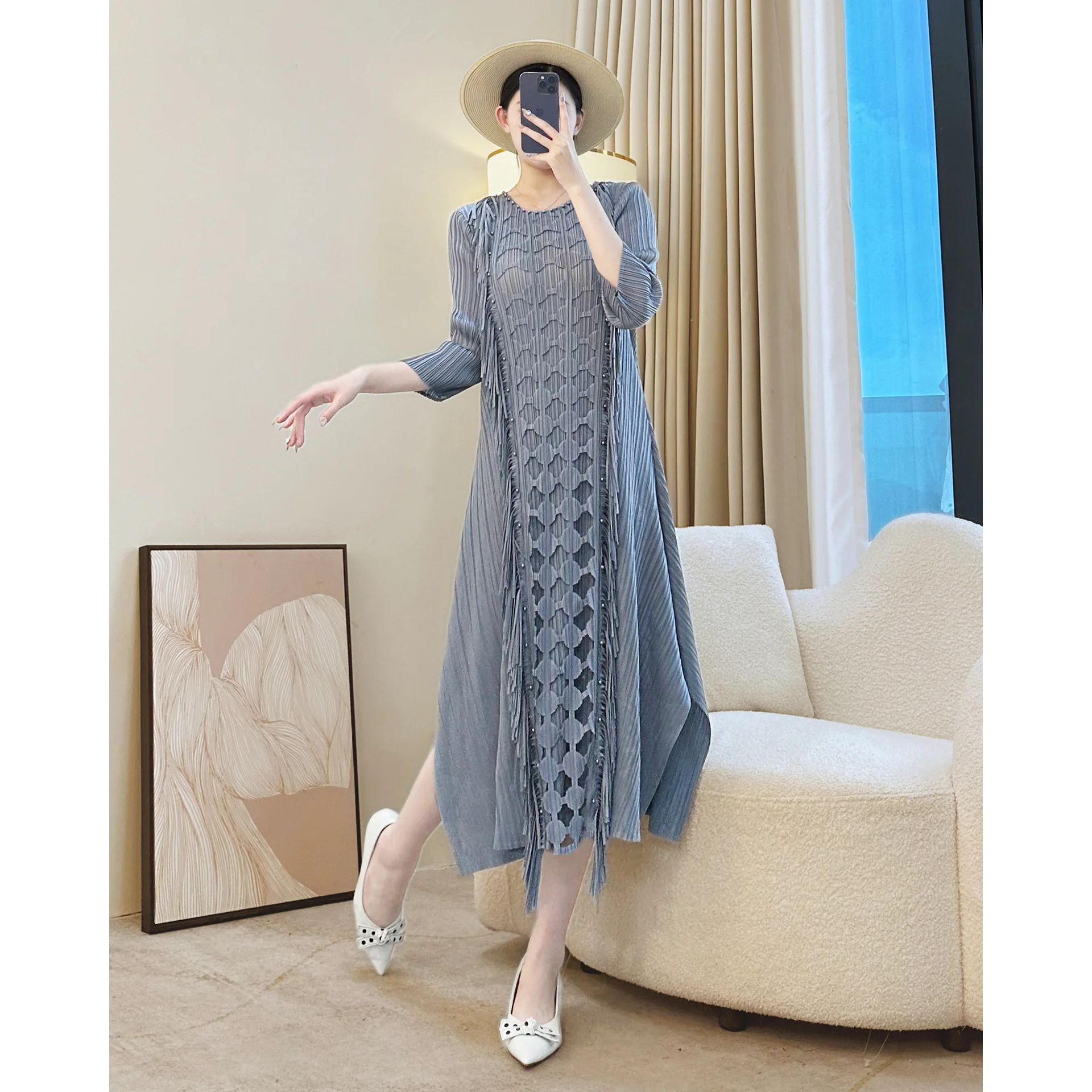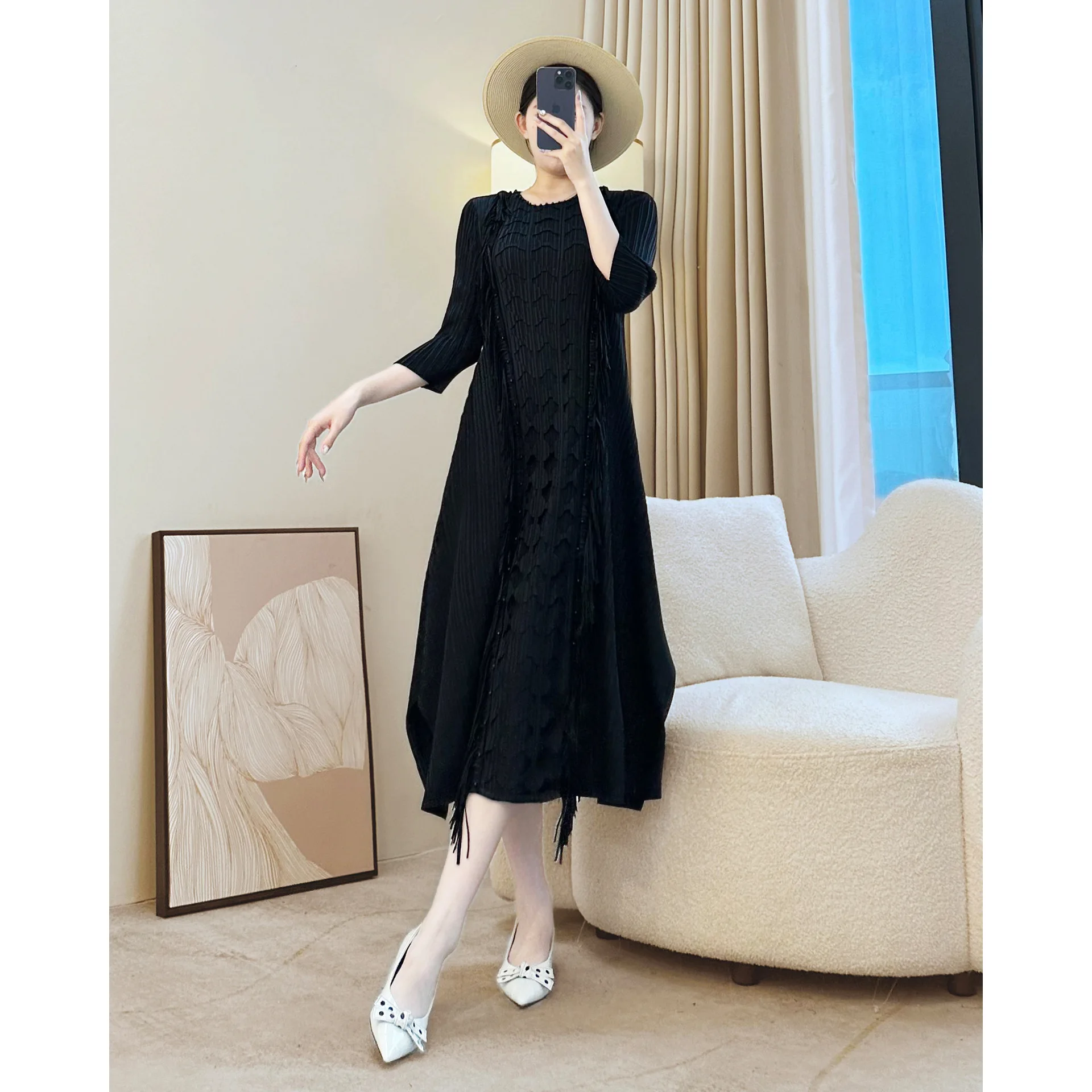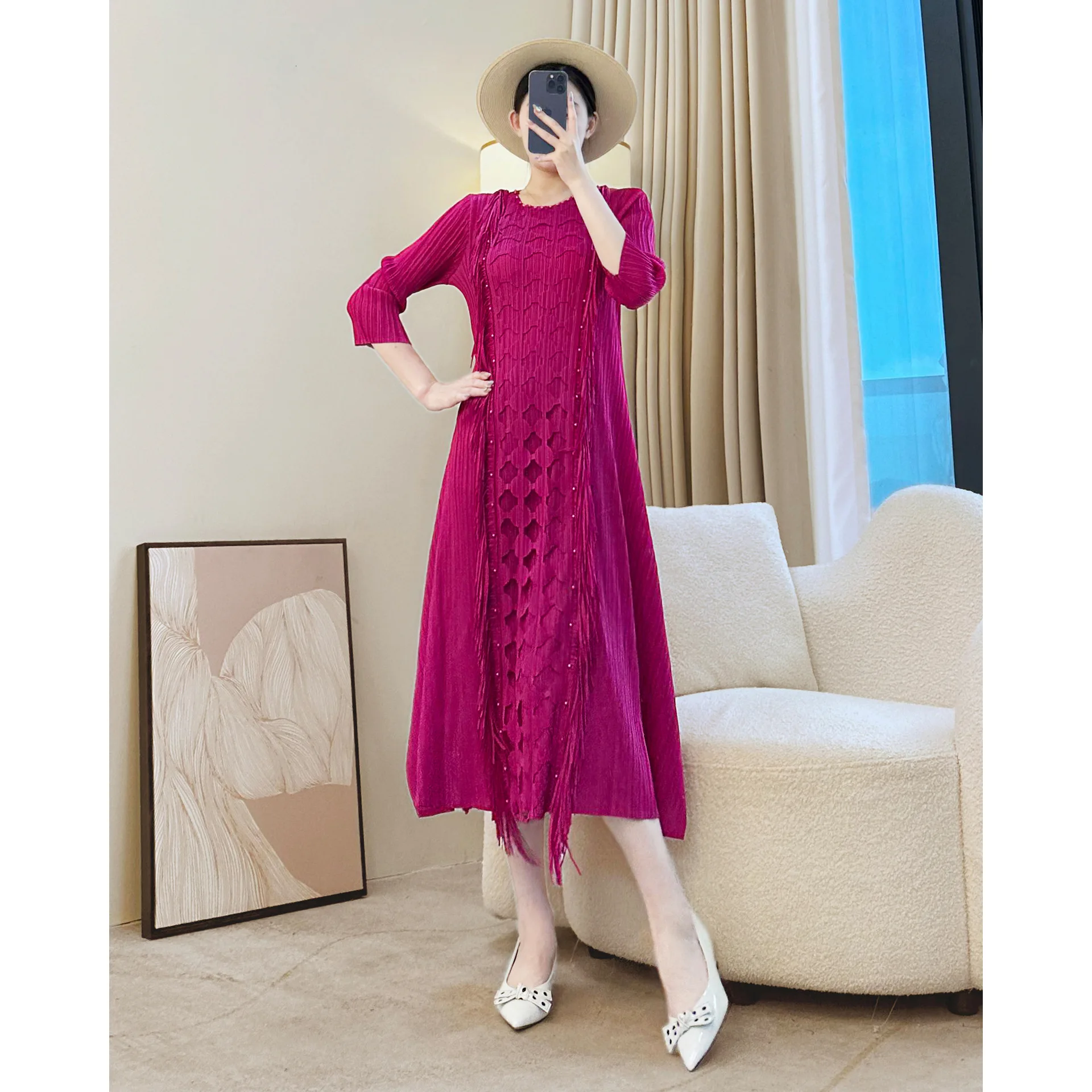 Miyake High-End Women's Casual Dress Autumn New Solid Color Pleated Dress Factory Wholesale
