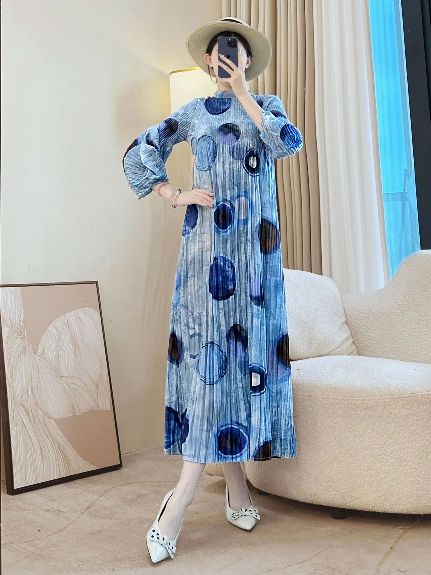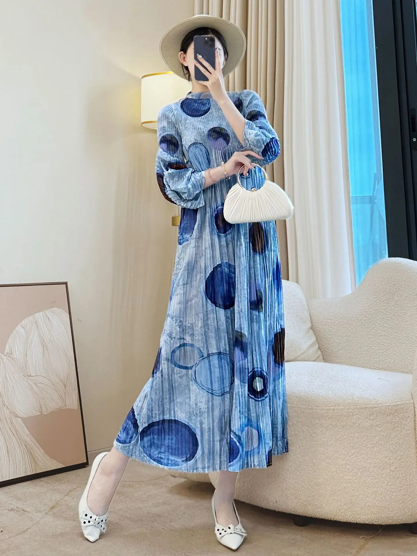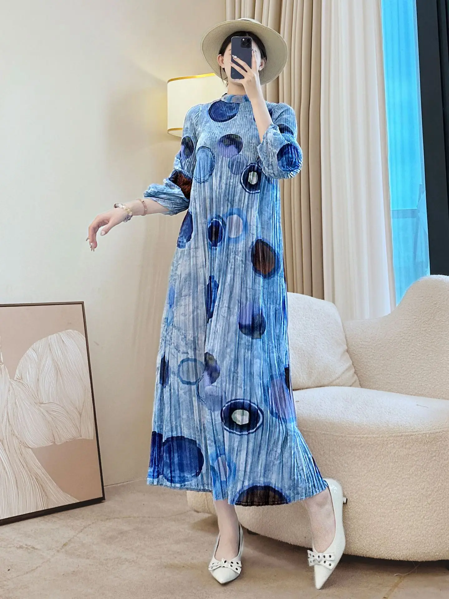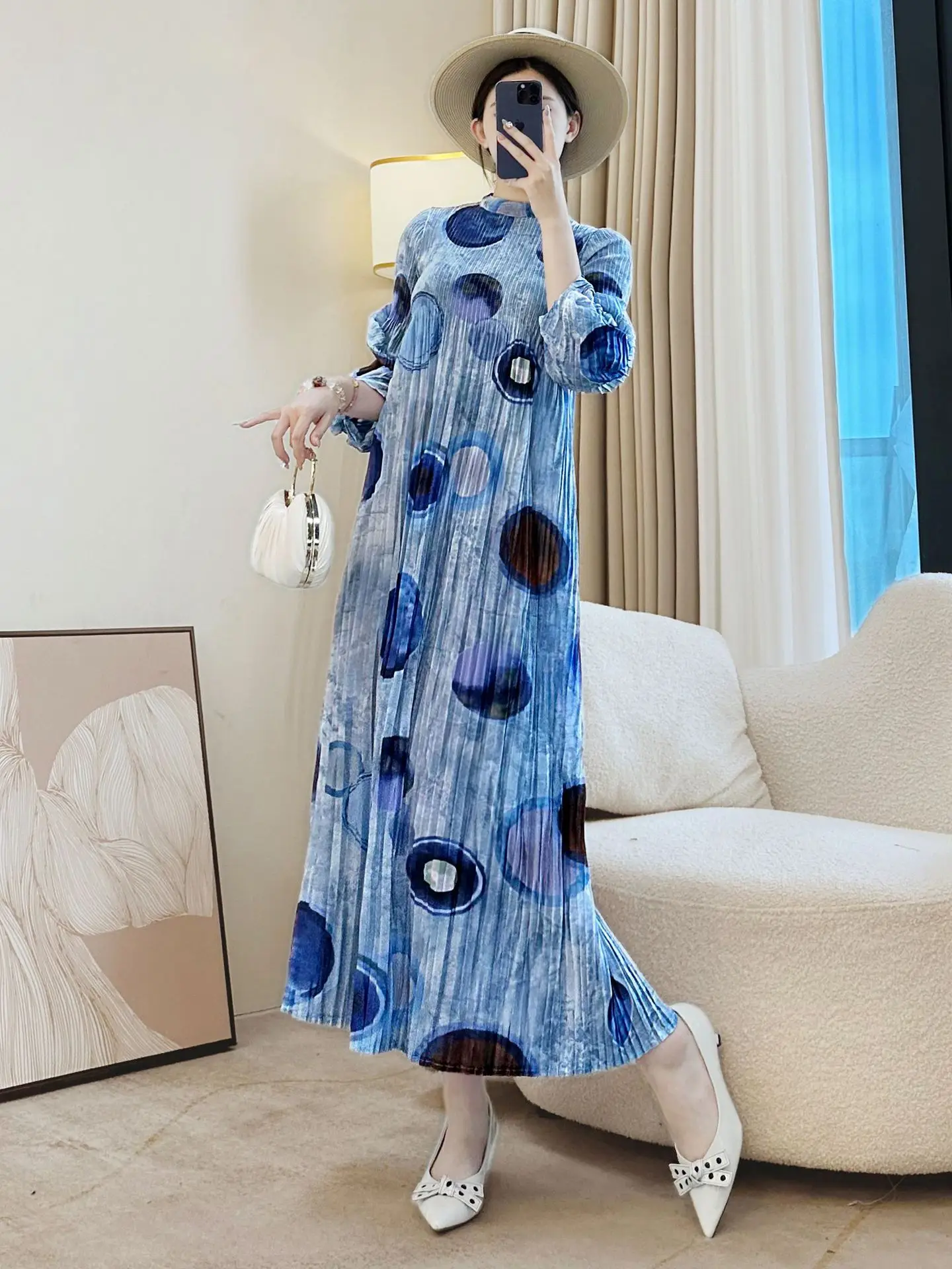 Factory Wholesale Miyake Pleated Dress Women's 2025 New Spring Autumn Long Sleeve Temperament Casual Dress
