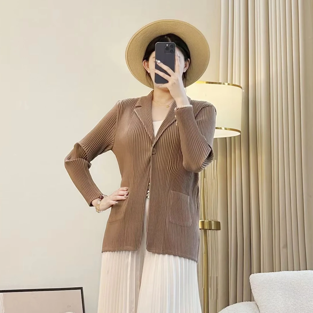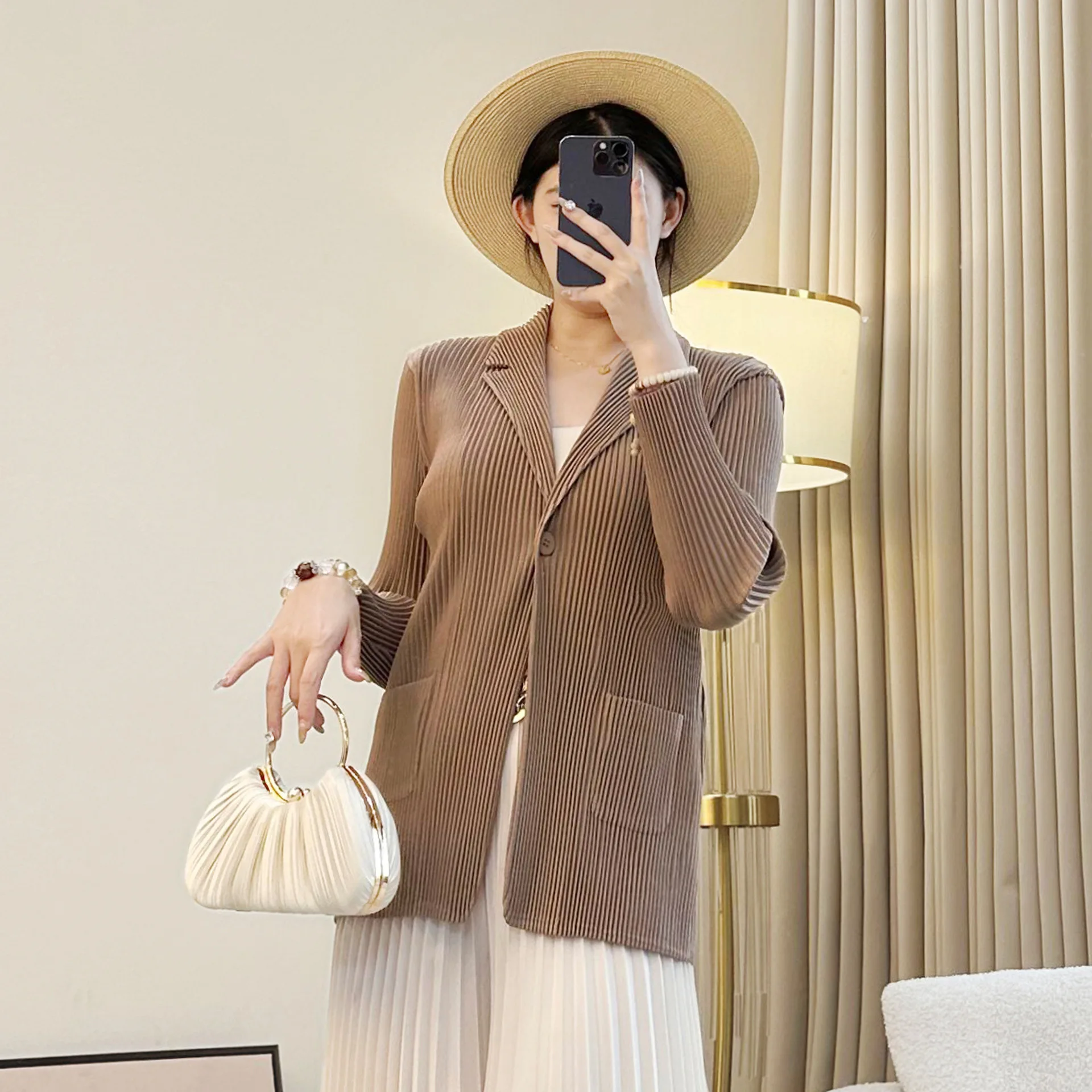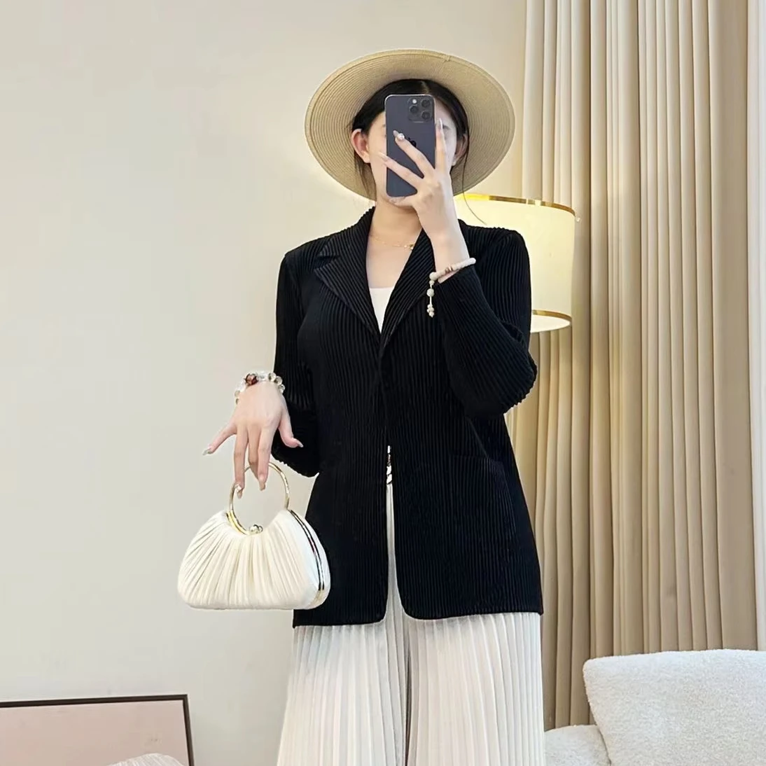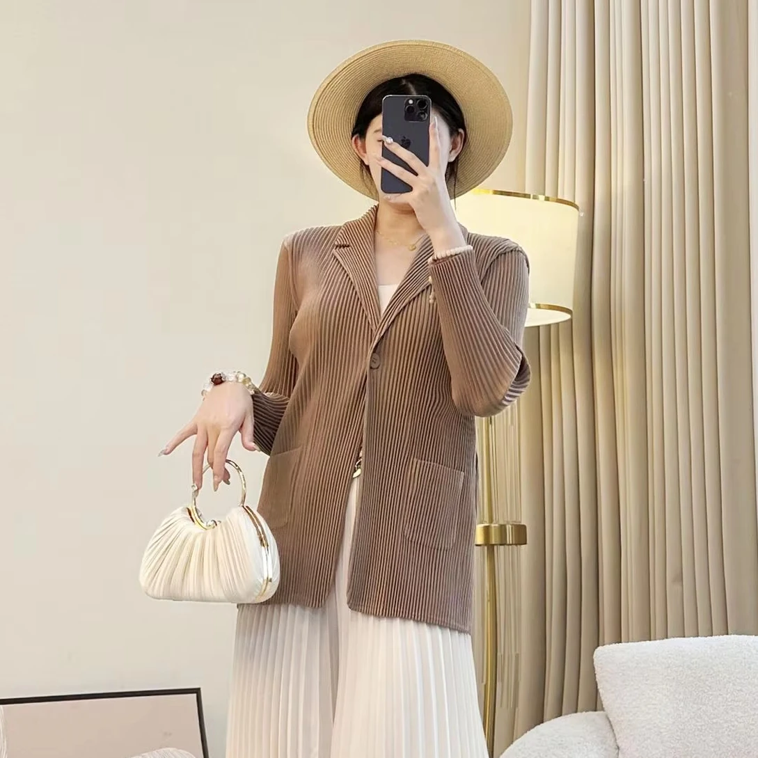 Miyake High-End Women's Elegant Slim Commuter Suit Coat New Autumn Pleated Design