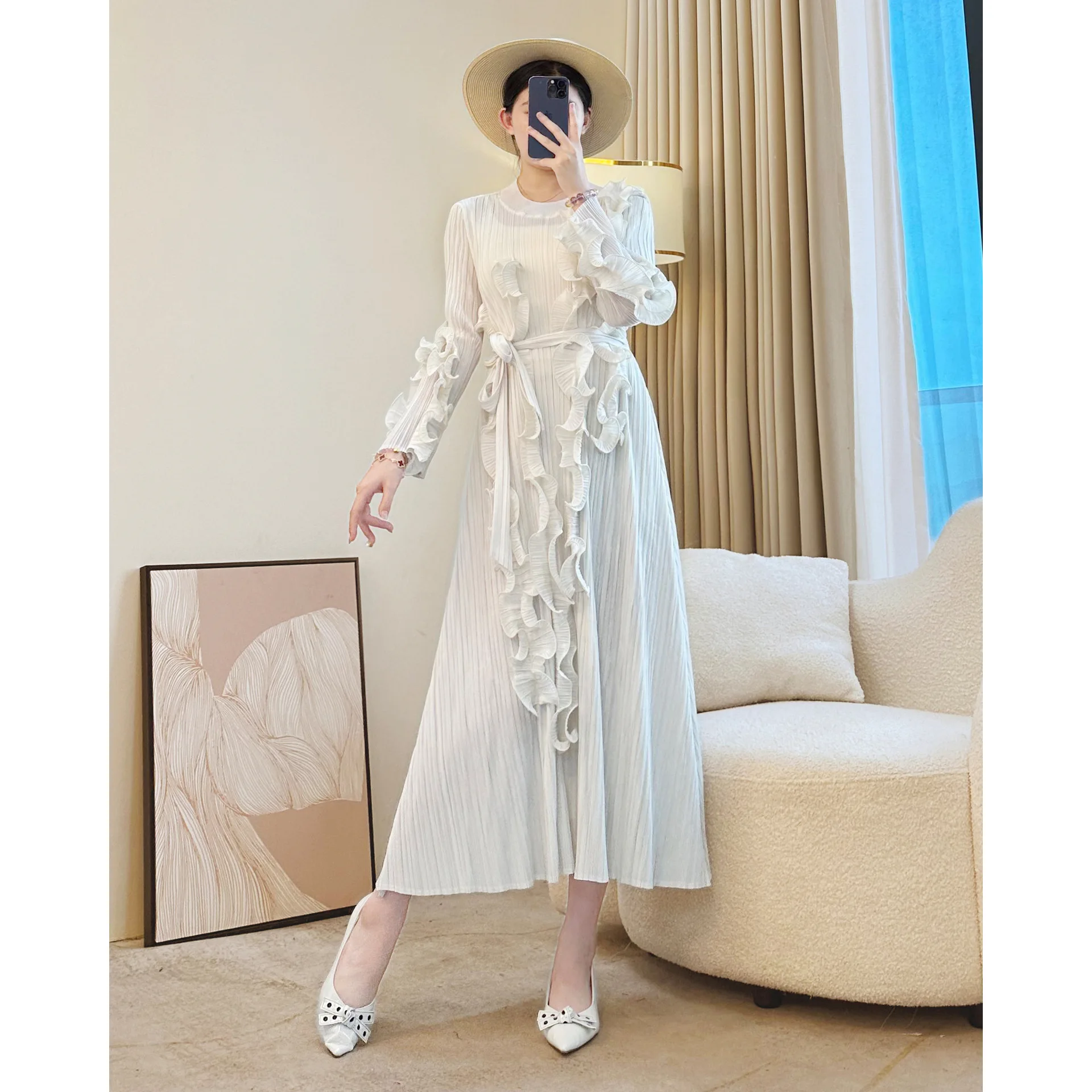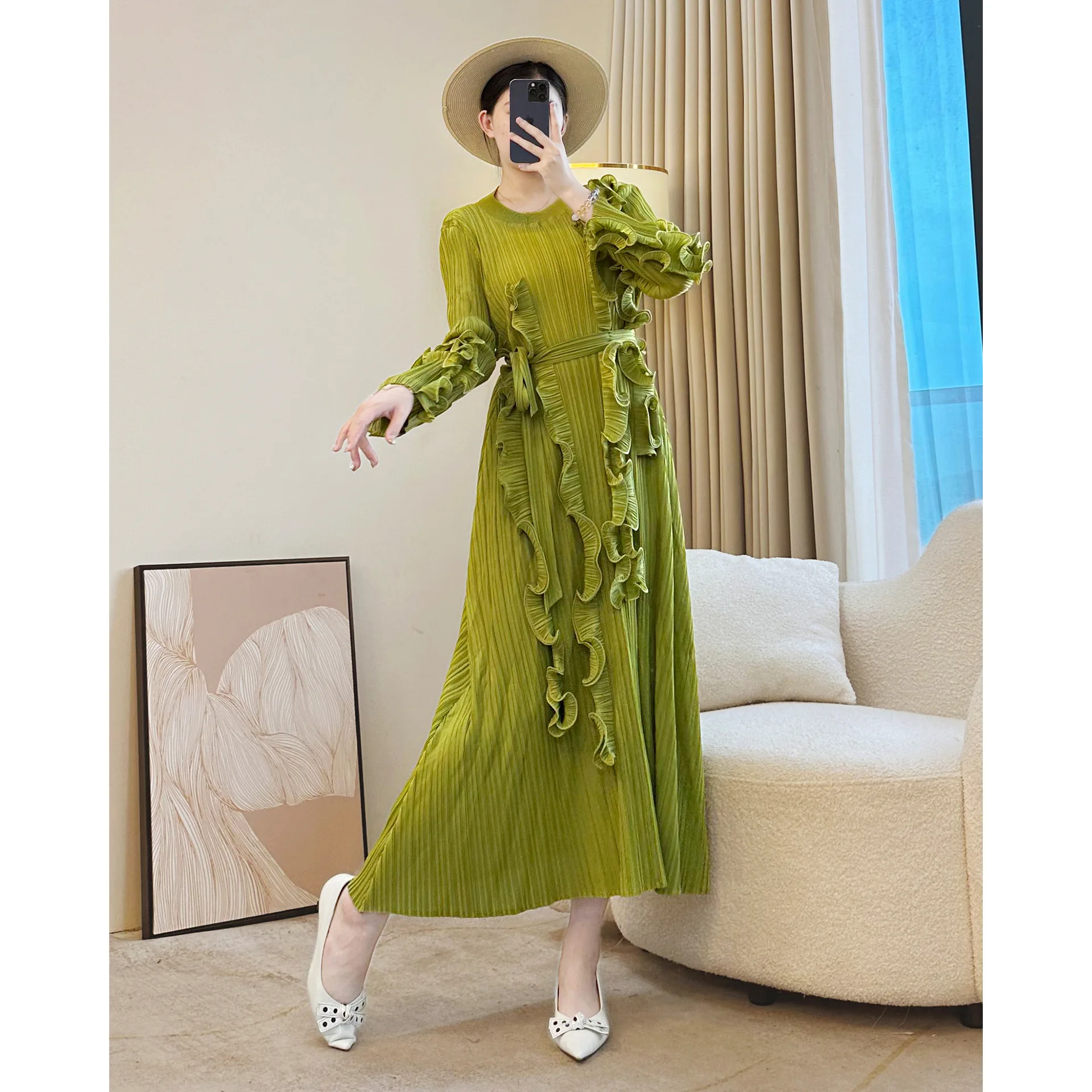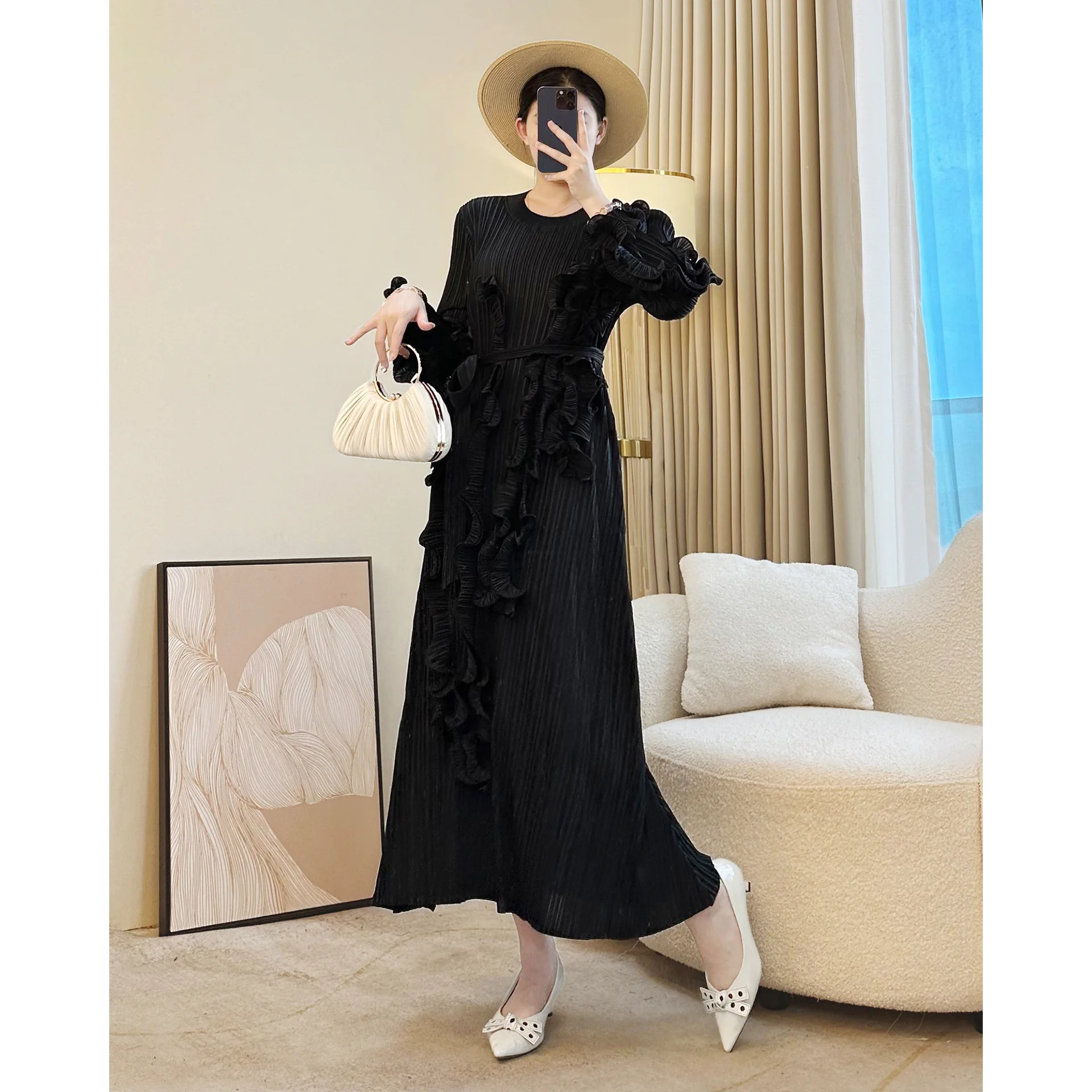 Miyake 2025 Women's Autumn and Winter New Design Pleated Dress Elegant Casual Long Skirt with Ruffled