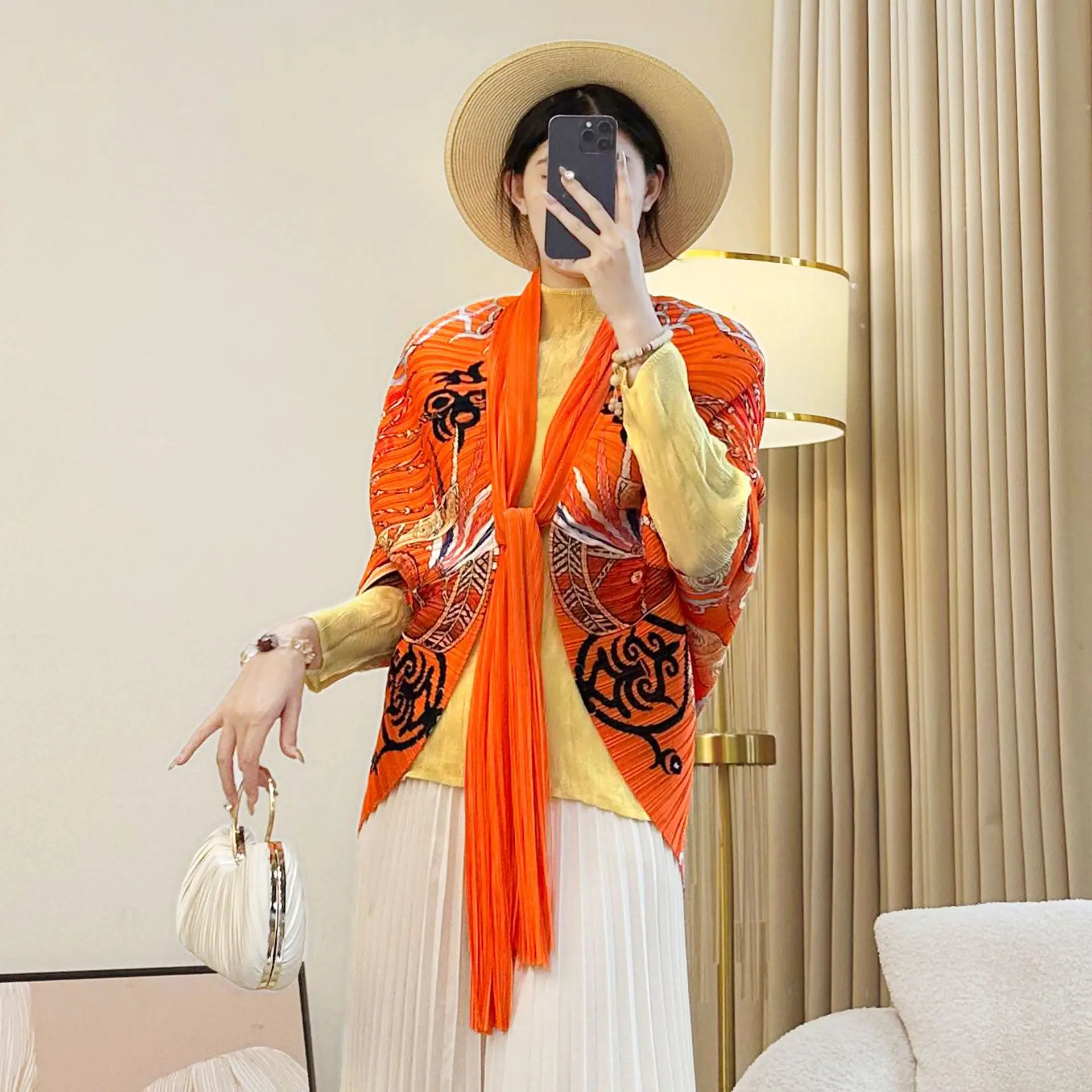 Miyake Pleated Women's Shawl High-End French Design Lightweight Elegant Casual Outerwear with Artistic Patterns Women's Top