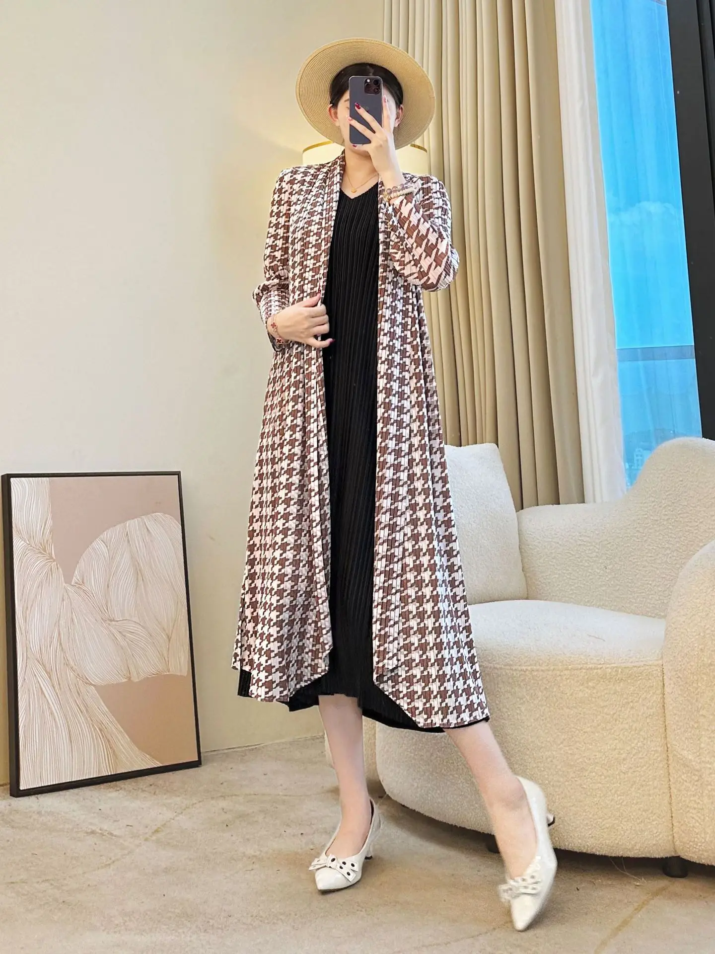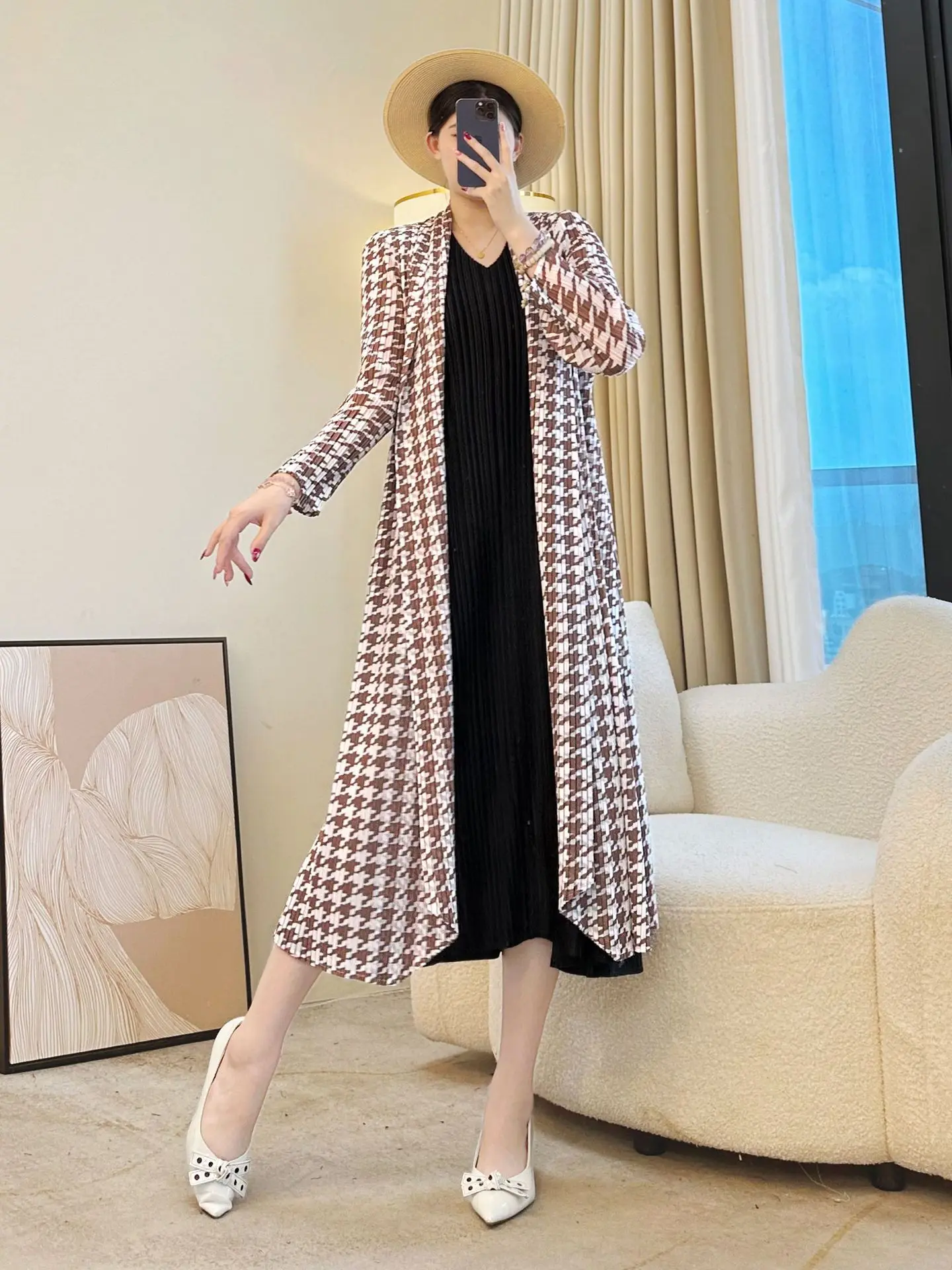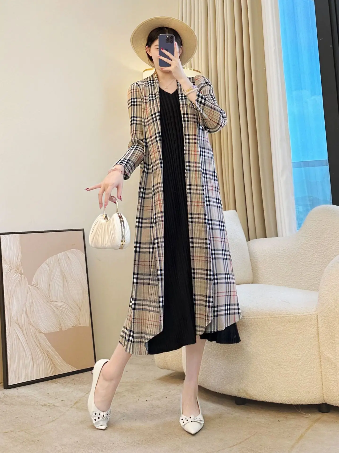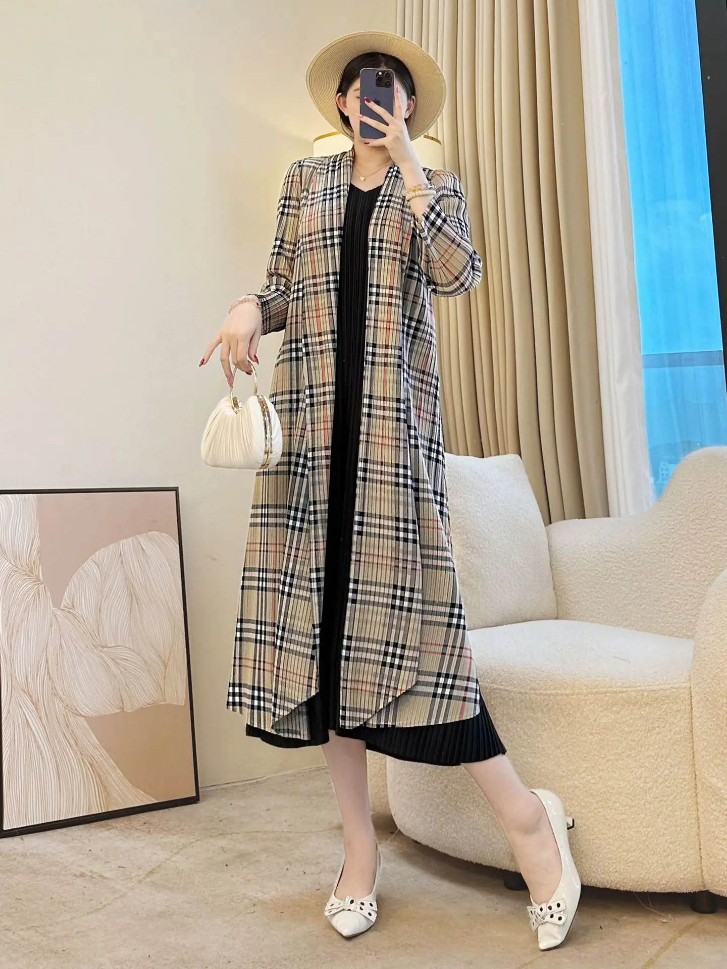 Miyake 2025 New Plaid Pleated Cardigan Women's Coat Temperament Fashionable Casual Style Women's Clothing Wholesale