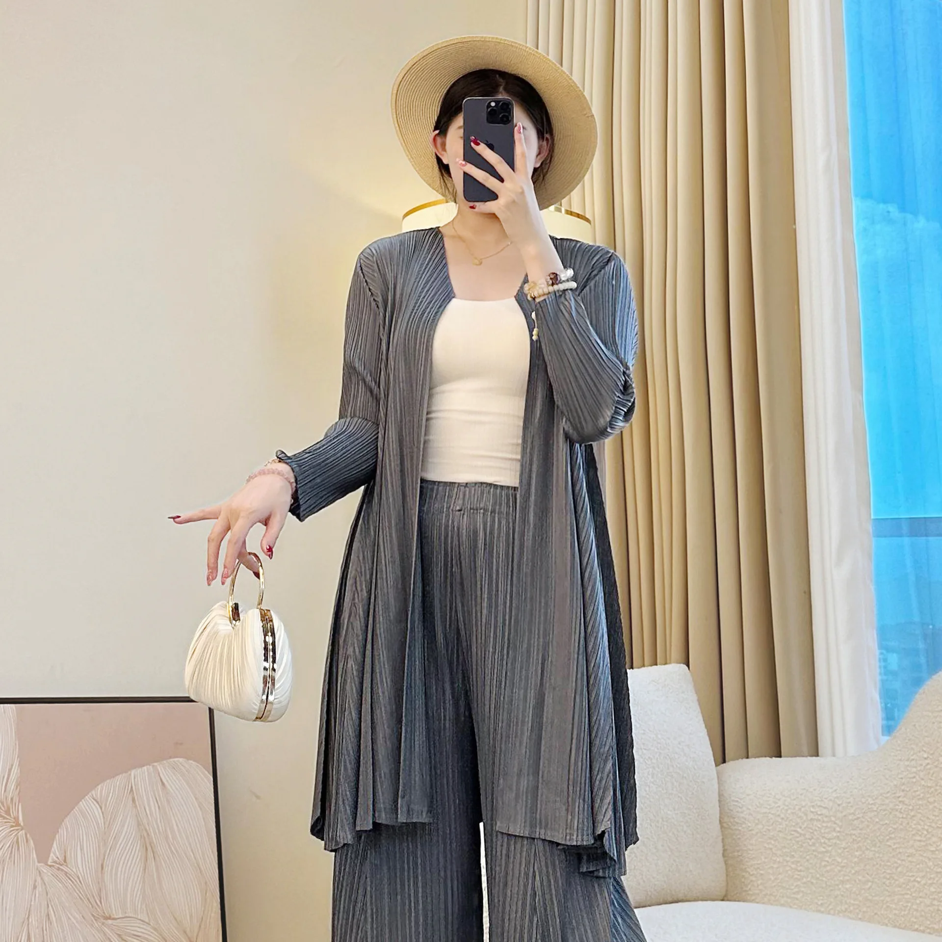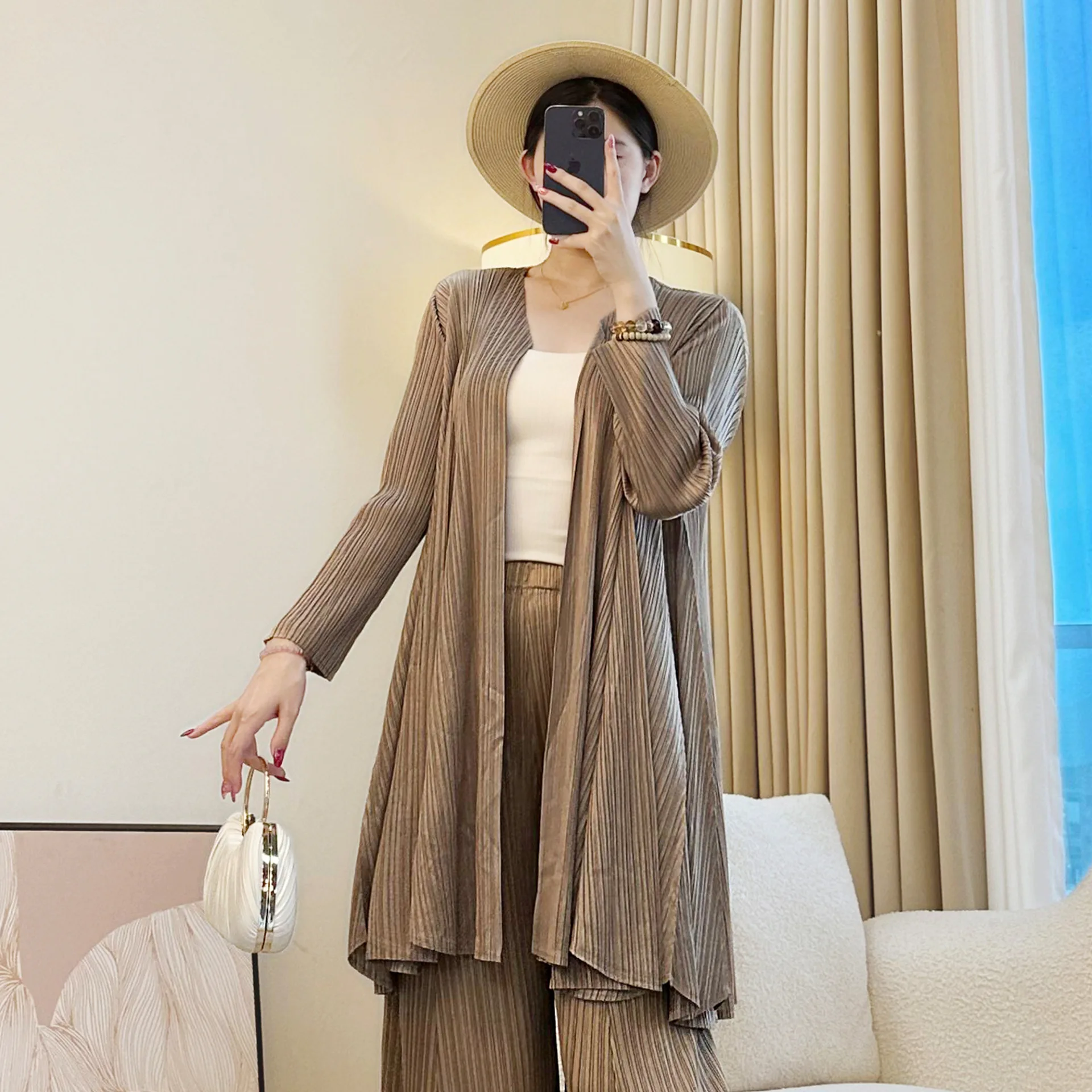 2025 New Miyake Pleated Women's Cardigan Mid-Length Temperament Outerwear Fashionable Commuting Style Women's Clothing