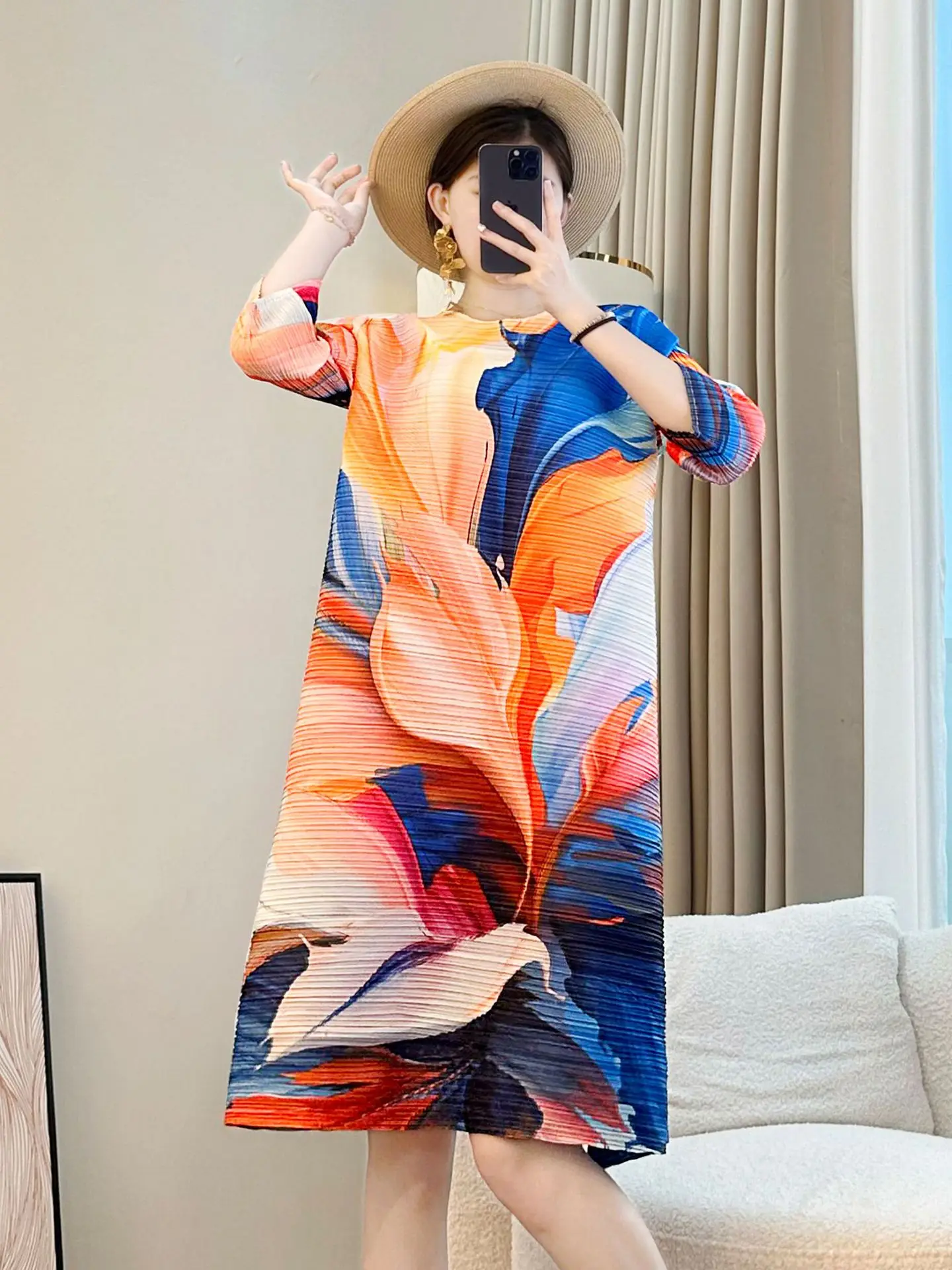 2025 New Pleated Printing Casual Ladies Dress High Fashion Temptation Factory Wholesale Plus Size Women's Dress