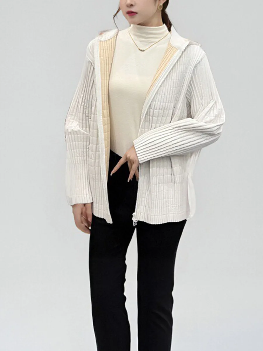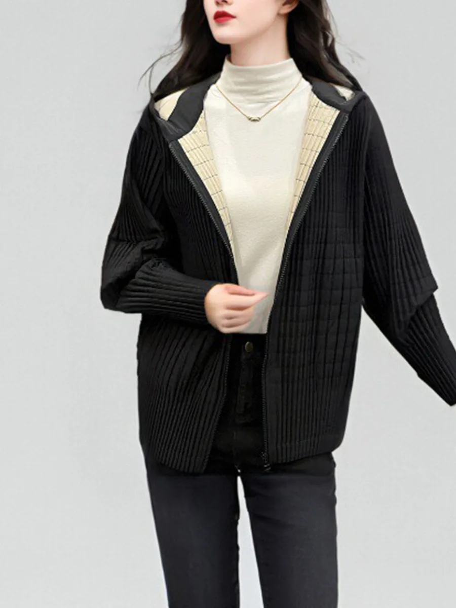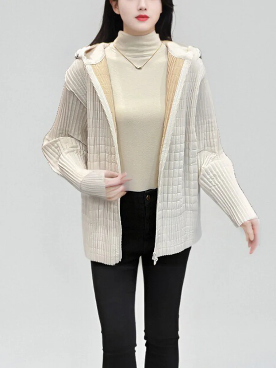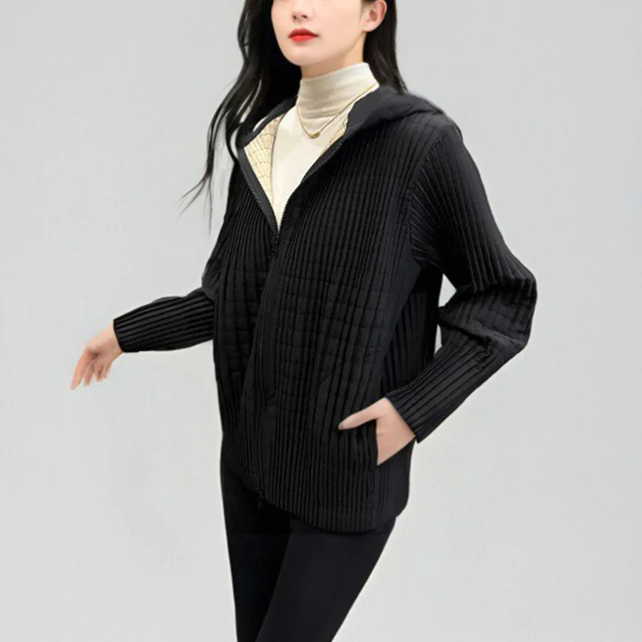 2024 New Women's Winter Jacket High Quality Cotton Hooded Zipper Closure Pleated Print Loose Casual Coats Thin Long Puffer