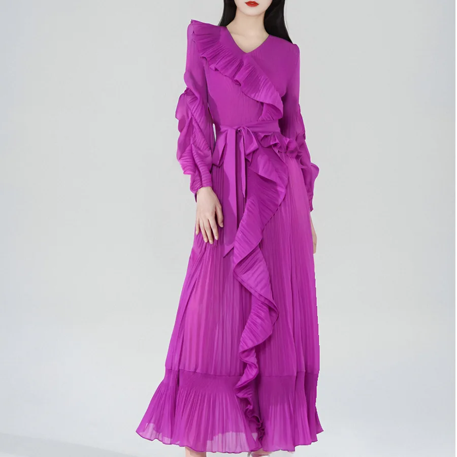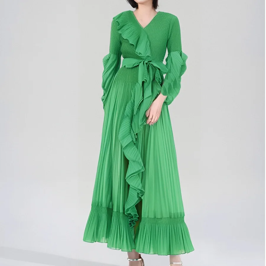 2024 Vintage Style Ladies Maxi Dress High Quality Pleated Ruffled Irregular Layered Ruffle Woven Free Size Casual Party Dress