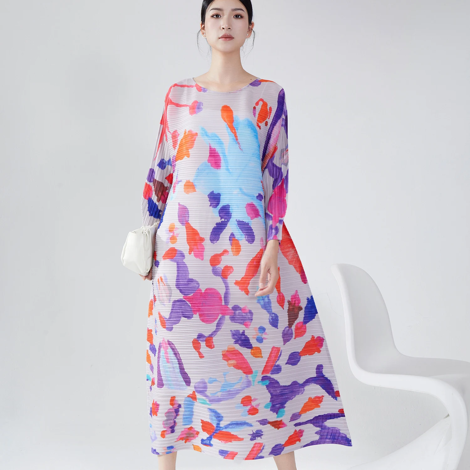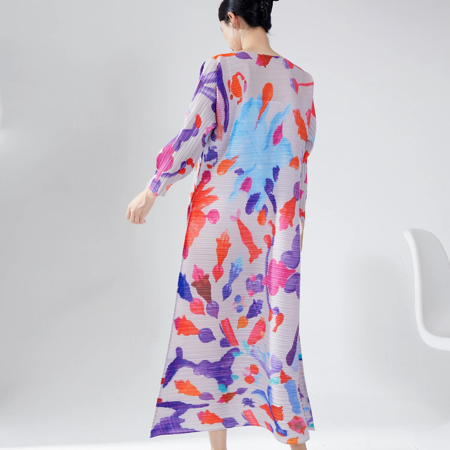 2024 Miyake Design Casual Long Skirt Pleated Dress Women Elastic Stretch Shirt Dress Spring Printed Fashion Adults Autumn