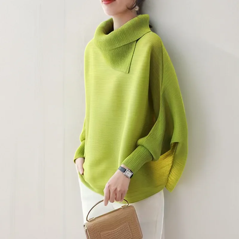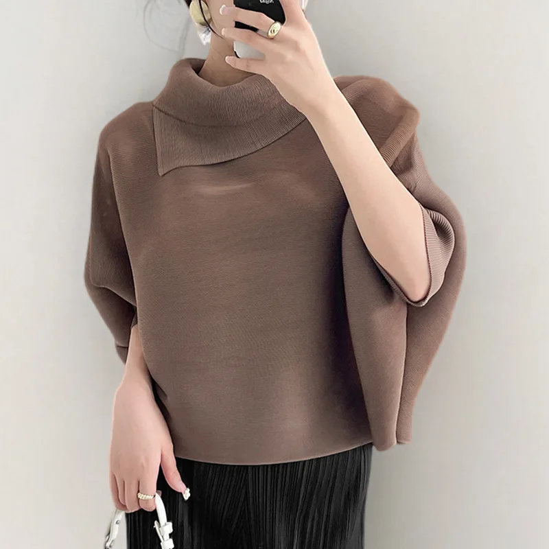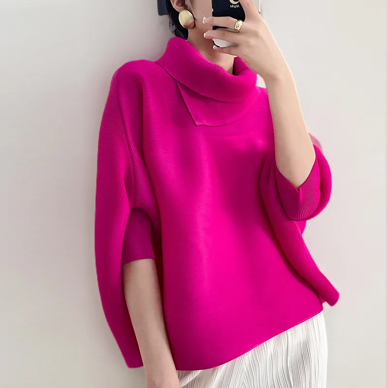 2025 Latest Design Miyake Pleated Casual Women's Summer Tops High Quality Polyester Vintage Solid Color Long Sleeve