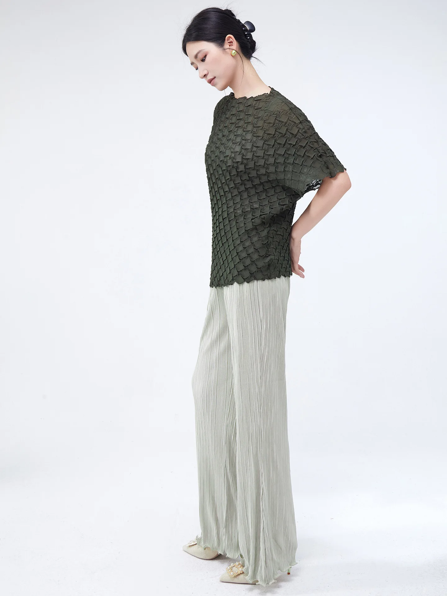 2025 New Women's Casual Pleated Pants Western Style Pleated Fashionable Loose Stretch Elastic Waist Trousers for Summer